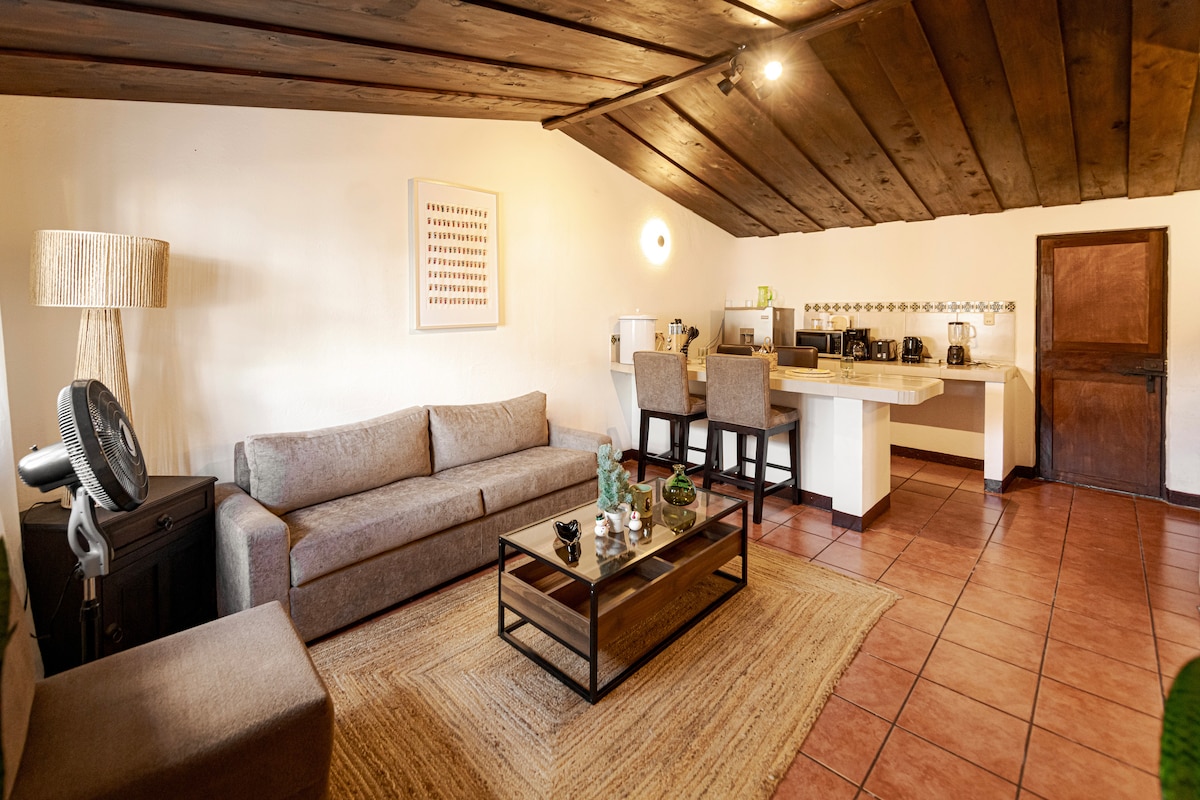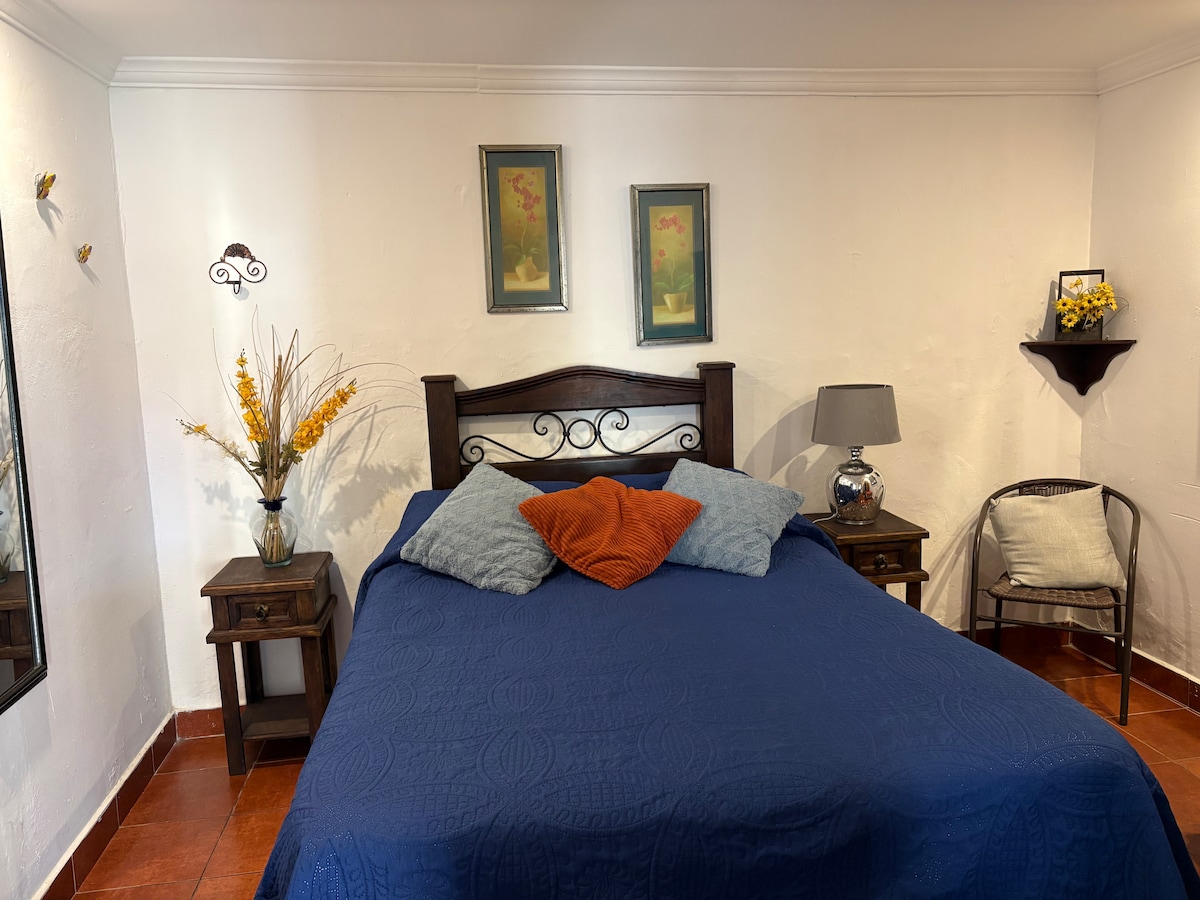 Apartamento en el centro de la cuidad. ¡A solo tres cuadras del Parque Central de Antigua Guatemala! Un acogedor alojamiento, perfecto para dos personas; este encantador espacio ofrece comodidad y conveniencia. Ubicado en el corazón de la ciudad, a pocos pasos de atracciones locales y con todo lo esencial para una estancia agradable. CONSIDERAR: No contamos con parqueo privado.