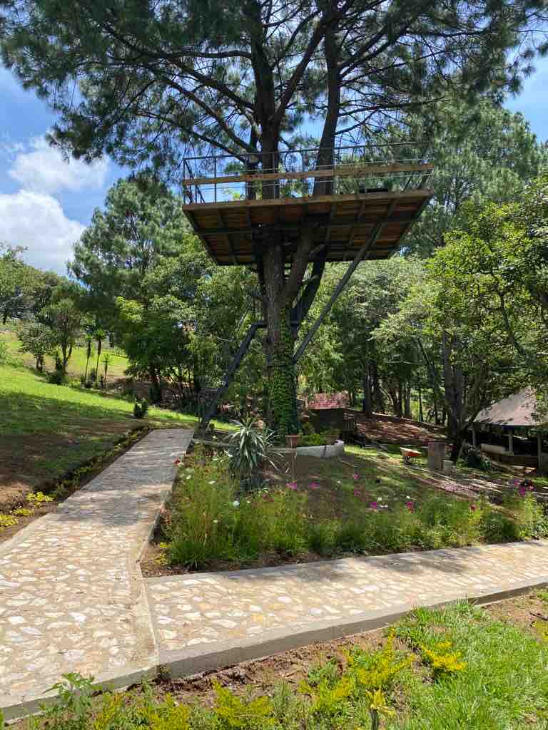 Es una cabaña / casa rodeada de naturaleza , árboles y flores . Cuenta con una vista espectacular a los volcanes y bosques. Cuenta con amplio estacionamiento y un jardín de media manzana . Camino al Hato en donde encontrará muchas amenidades como Hobbitenango, Earth Lodge, Antigua Boreal entre otras . Estamos en el inicio de toda la franja turística. La casa cuenta con todo lo necesario para cortas y largas estancias. Se pueden realizar caminatas . seguridad 24/7.