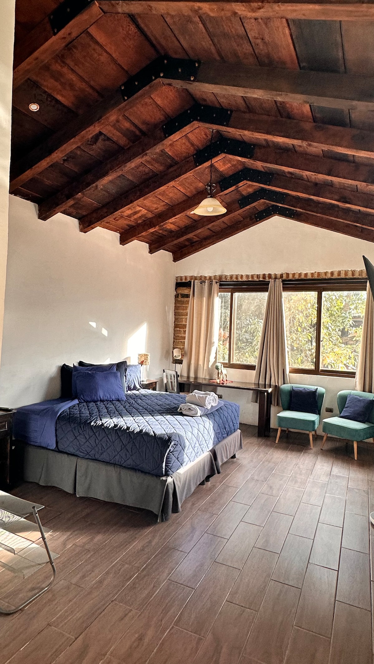La villa tipo loft tiene su propio estilo coastal, disfruta una relajante experiencia en pareja amigos o trabajo, rodeada de fuentes de agua piscina climatizada, tranquilos jardines, vistas a volcanes, senderos, pérgolas con cava fogatas y parrilla, shuttle a lugares céntricos dentro del casco de Antigua, a solo 500 metros de entrada a la ciudad colonial a 1 kilómetro de Central Park, un exclusivo condominio con vigilancia 24/7 villa completamente equipada, sanitizada en cada cambio de huésped.