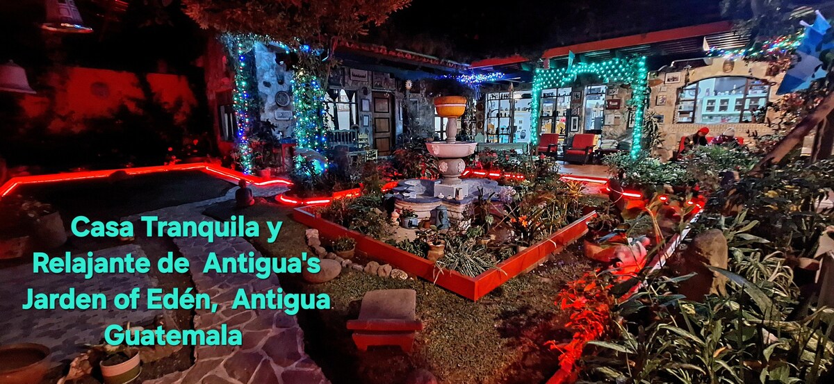 Enjoy Antigua in our house, Casa del Centro. A cozy place just 60mts from central park (1/2 block) the best in town. You can take the meals or the sun at the garden and enjoy the different lovely areas at the house. The house has a lobby, 2 rooms with queen beds. The principal room has a mezanine with a working area. Complete Kitchen, dinning and living room, laundry. The parking is free but it is located at 5 blocks. Wifi 80megas.
