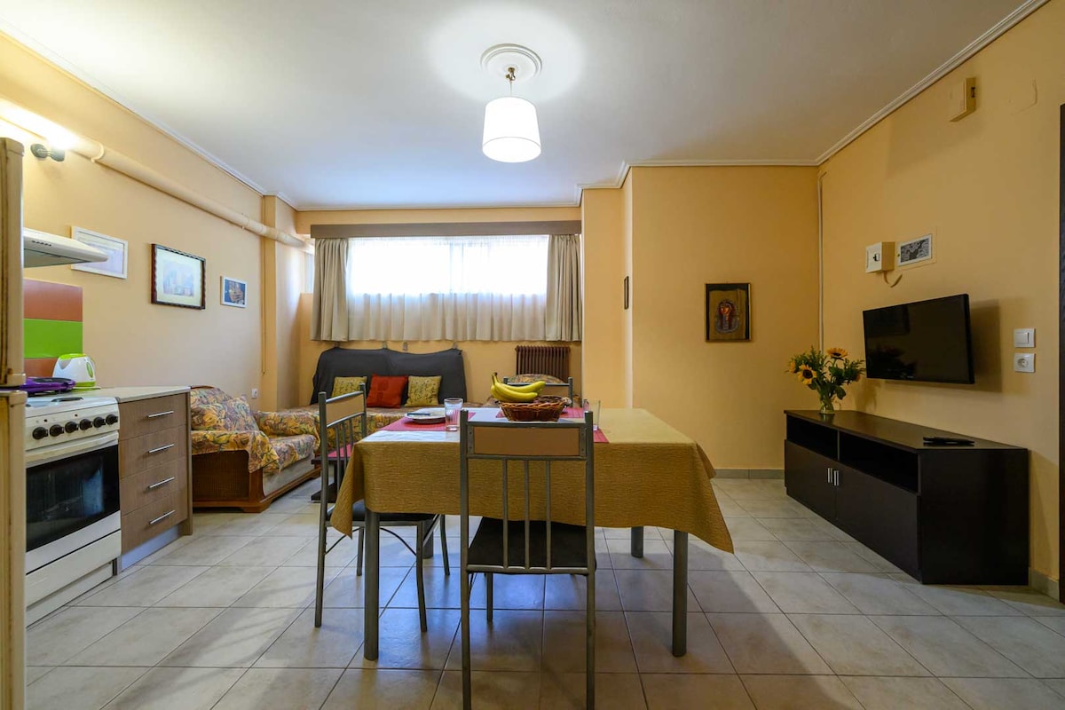 Newly, completely renovated 1st floor studio in the heart of Kalamata, in the immediate vicinity of the Central Square and International Dance Center. It has 1 king size bed and a fully equipped kitchen. Modern, well-furnished and fully functional. It is suitable for couples, families with infants, professionals or anyone else who desires relaxation and tranquility.