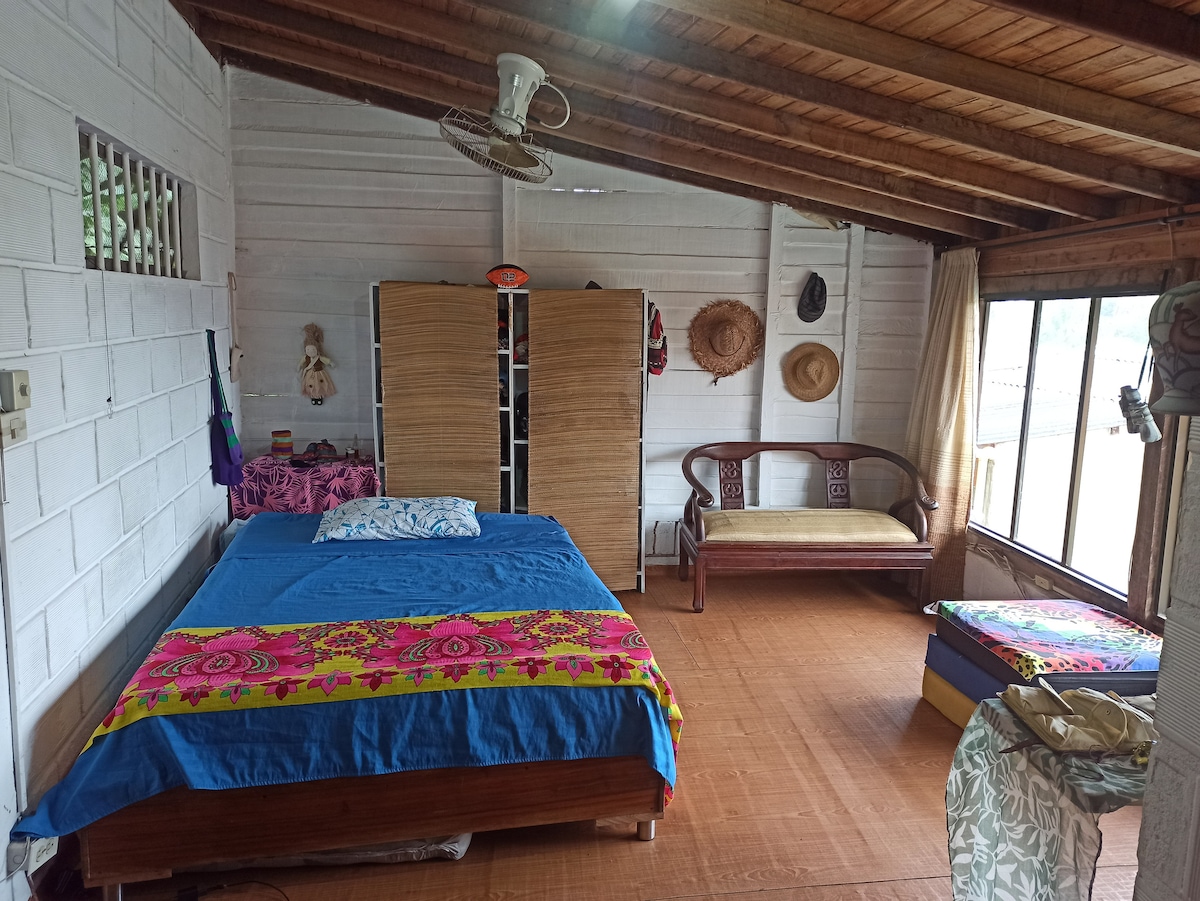 Ven a una hermosa cabaña en las montañas de Medellín, rodeada de plantas, bosques de pinos y árboles nativos. En una finca privada y aislada, es el lugar ideal para crear, descansar y reconectar con la naturaleza. Disfruta del silencio, explora senderos, contempla vistas increíbles a las montañas y relájate frente a la chimenea de leña. Muy cerca, en Medellín, pero sentirás que estás lejos de todo. Perfecta para escapadas rurales, retiros creativos o una pausa en medio de la naturaleza.