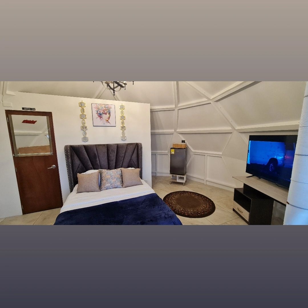 Disfruta de una escapada única en nuestro exclusivo domo con jacuzzi privado, rodeado de naturaleza. Ofrecemos servicio de cena y desayuno incluidos en el precio. Relájate en nuestra cómoda cama queen y disfruta de la vista desde nuestro deck panorámico. Báñate en el jacuzzi privado al aire libre y desconecta del estrés de la vida cotidiana. ¡Reserva ahora y vive una experiencia inolvidable en la naturaleza!"