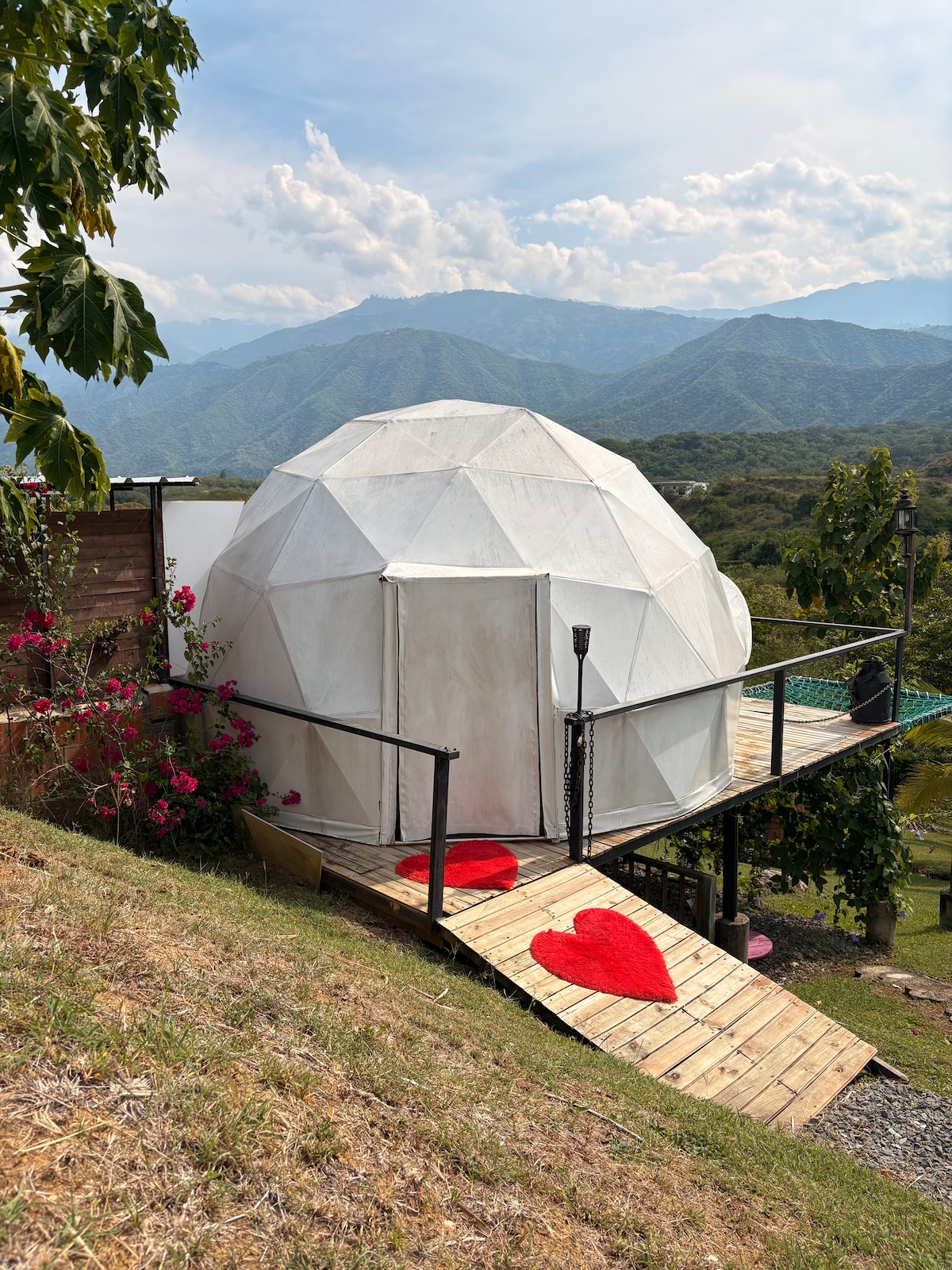 Hermoso Domo - Glamping ubicado junto a reserva natural. INCLUYE: Cama King• Cocina equipada• Baño privado• Agua Caliente• Jacuzzi privado• Sofá y escritorio• Deck con mobiliario• Televisión• WiFi 300 MBP• Fogata autoservicio• Asador-BBQ a gas• Parqueadero gratis. COMIDA PARA PREPARAR O DE RESTAURANTE, LICOR, MEDICINA Y CASI CUALUQIER COSA SE PUEDE PEDIR A DOMICILIO Y LO LLEVAN HASTA LA PUERTA DEL GLAMPING. RNT: 162437