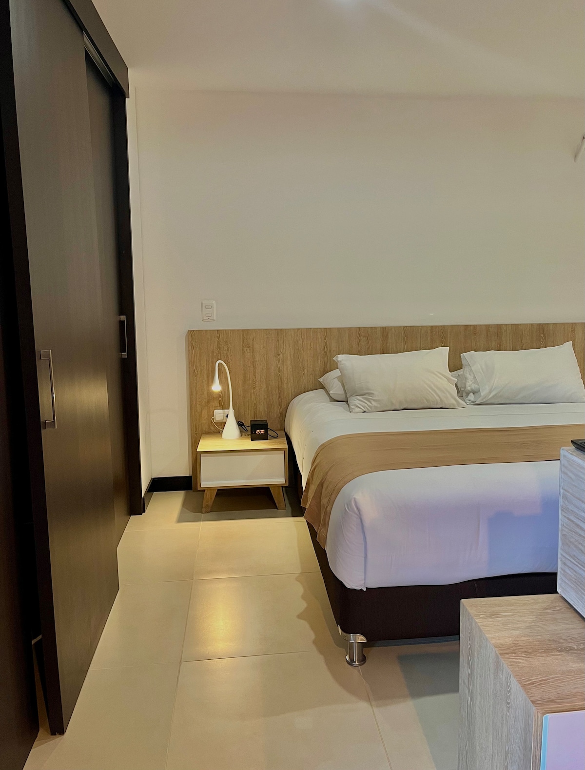 Elegant and cozy studio in Poblado, carefully designed to provide a comfortable stay filled with Medellin pictures and icons to make you feel like a paisa! Perfect for long stays. Close to main shopping malls, restaurants, metro station, and main streets, so getting around is very easy. Amazing free co-working space in the building with coffee shop where you can have breakfast or lunch. Free gym access 24 hours and paid laundry room