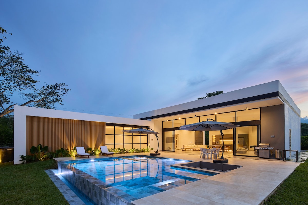 Este lugar único tiene su propio estilo. Es un lugar único entre para descansar en familia, amigos o pareja con un excelente clima. Este alojamiento es moderno. -Piscina moderna inspirada en miconos, con una iluminación extra ordinaria. -Jacuzzi climatizado -Billar Pool -Asador a gas, horno y Barril -4 Habitaciones con aire acondicionado -Acabados de Lujo -Cancha Pequeña de Microfutbol -Smart tv -Wifi de Starlink