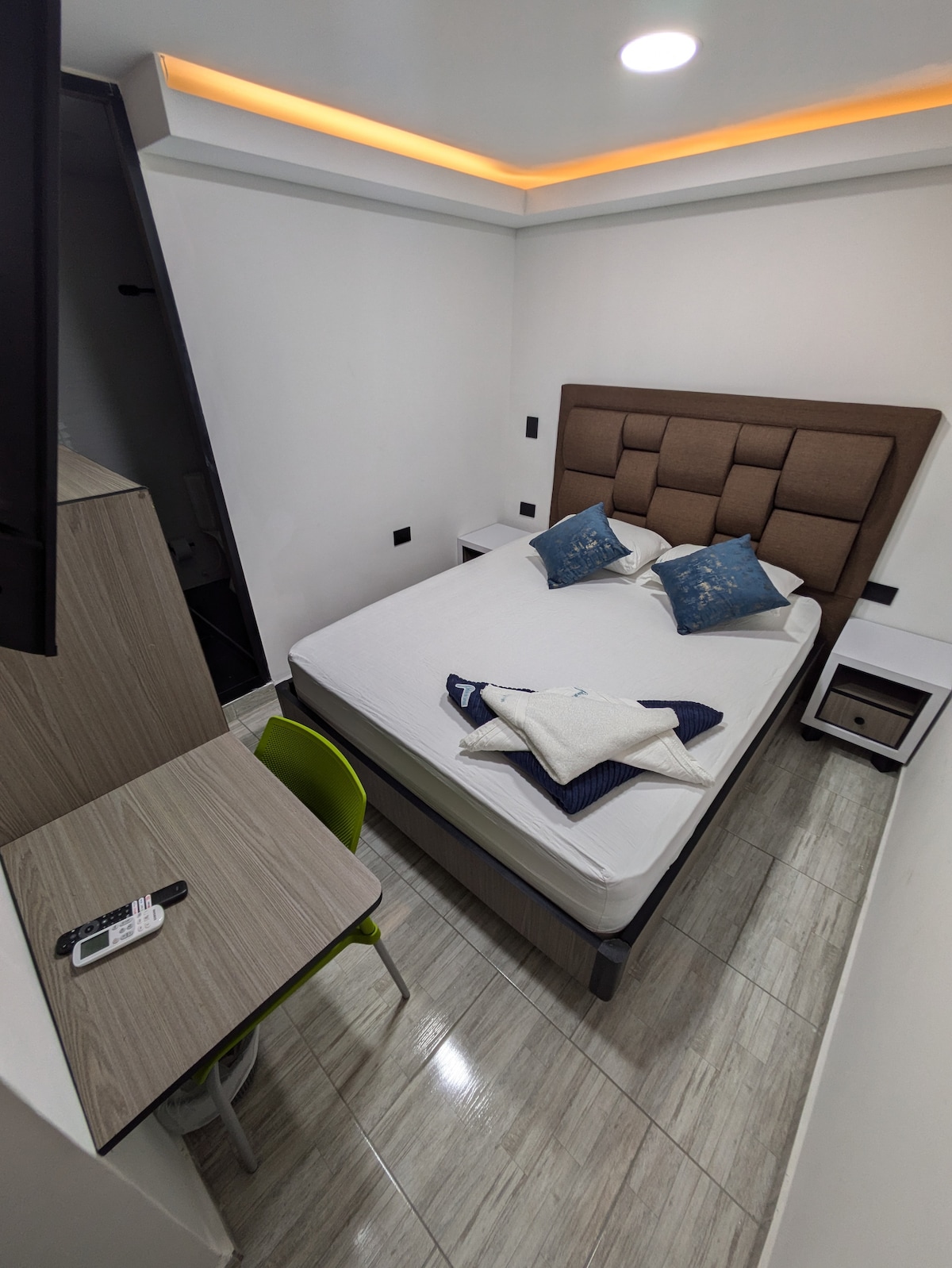 Descubre una experiencia, diseñada para quienes buscan elegancia, comodidad y exclusividad. Cada detalle ha sido cuidadosamente pensado para ofrecerte una estancia inolvidable: desde su decoración moderna y sofisticada hasta la iluminación cálida que crea un ambiente acogedor. Cama amplia y sumamente cómoda, sábanas de alta calidad, y un espacio impecable que combina estilo y tranquilidad. Ya sea que vengas a relajarte o a trabajar, encontrarás el equilibrio perfecto entre lujo y comodidad.