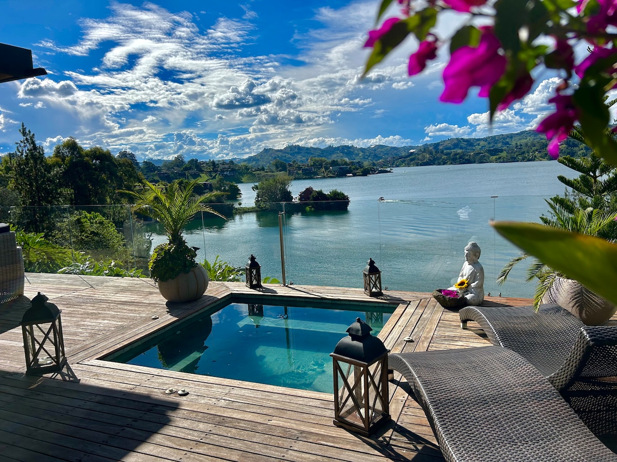 🥘 Room service with local cuisine made from fresh ingredients grown in our garden and prepared on the spot 🍳 Breakfast included 🌐 High-speed fiber WiFi to stay connected 🛁 Private jacuzzi with stunning lake view 🔥 Gas fireplace for cozy nights 🚣♀️ Kayak and paddle board included to explore the lake 🐦 Birdwatching right from your terrace 📍 Located across the lake from one of the region’s most iconic estates, only 15 minutes from La Piedra del Peñol and 18 minutes from Guatapé.