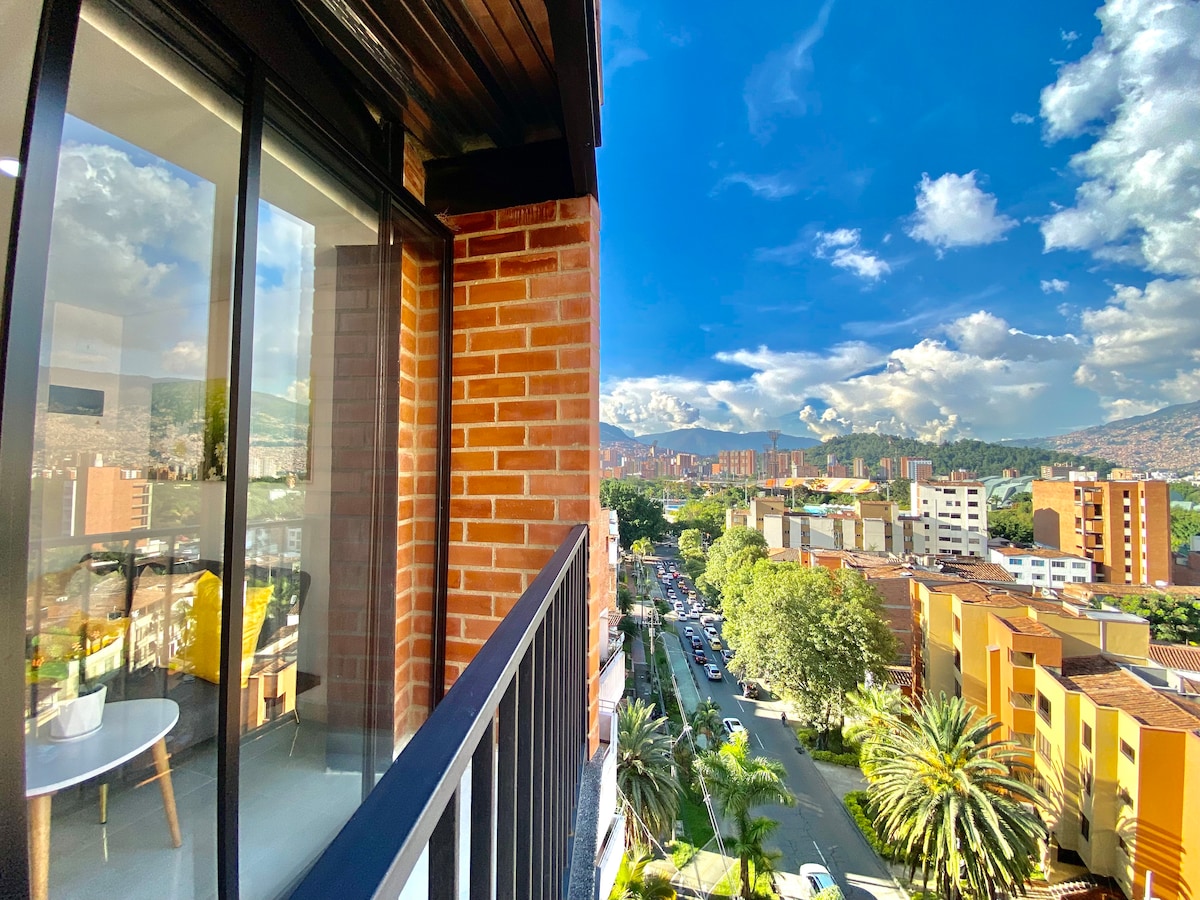 Enjoy a relaxing stay with family and friends in the most central apartment in Laureles! 🍃 The apartment is new, furnished, and has everything you need for your stay. It's located on the top floor of the building has a private rooftop terrace with a 180-degree view of Medellín! It's spectacular! There are outdoor security cameras and we have on-site security. Restaurants, nightclubs, Atanasio Girardot Stadium, and more are within walking distance. We look forward to seeing you! 🙏