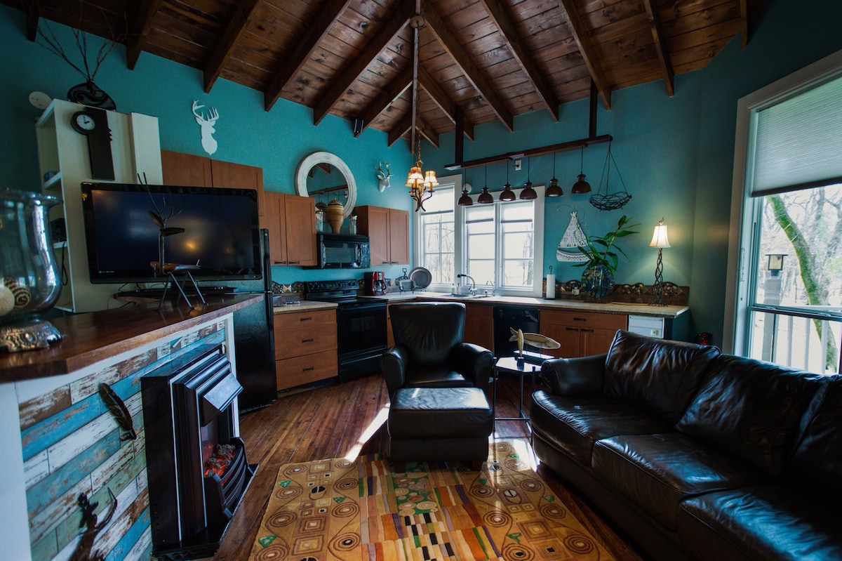 Welcome to Riverside Cabin—one of four secluded cabins nestled on a private 26-acre property in SE Oklahoma. This riverfront retreat offers stunning views of the Kiamichi Mountains and Little River, right from your windows. Enjoy kayaking, fishing, or just relaxing by the firepit under star-filled skies. Located only 8 miles from Honobia (Home of Bigfoot), 28 miles to Sardis Lake and 28 miles to Broken Bow. Pets allowed. A $100 pet fee applies per stay.