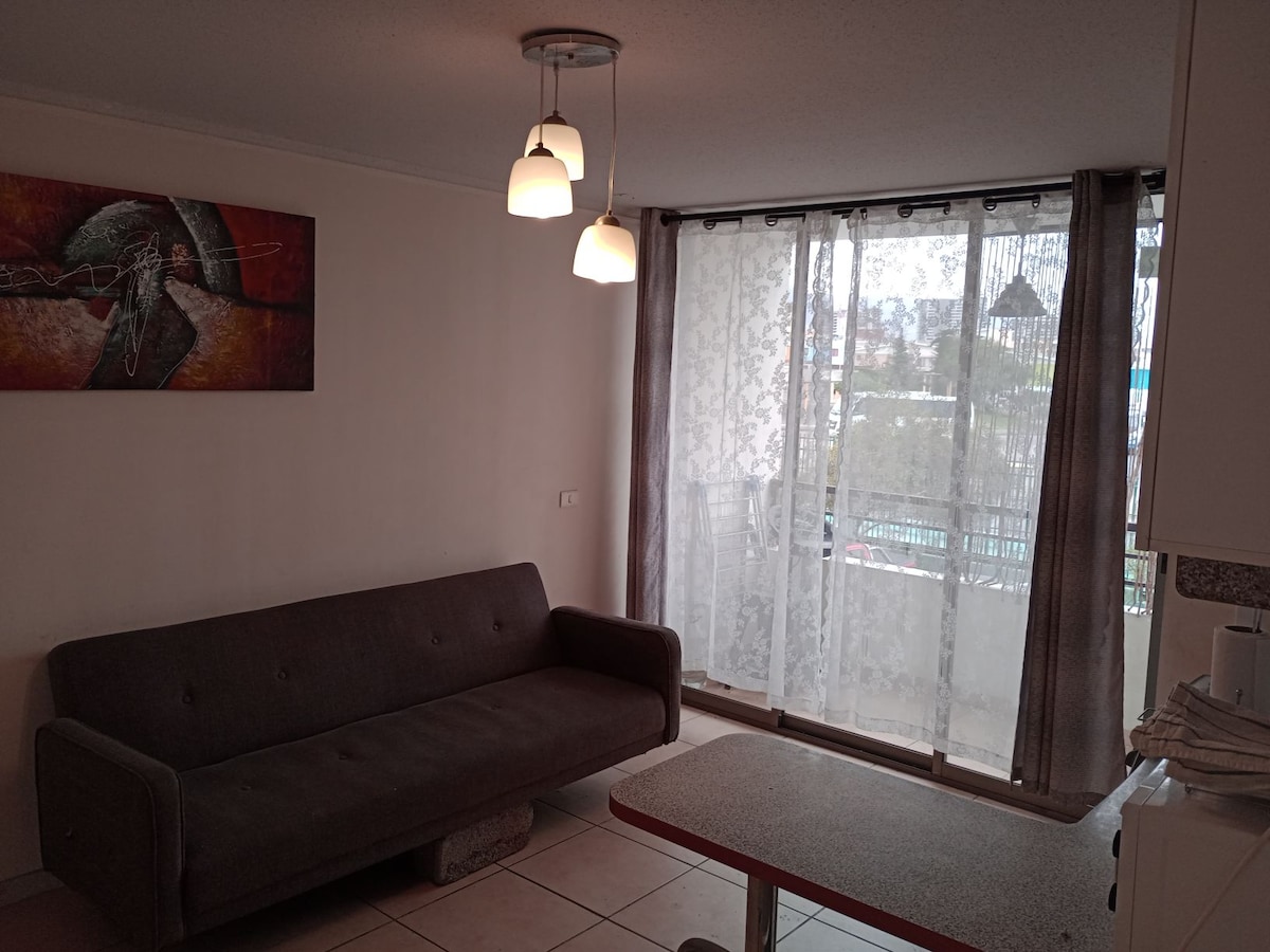 Departamento pequeño, en condominio de edificios, cercano a Teletón, supermercado , ferias, canchas de fútbol y pádel,locomoción a la salida del condominio.