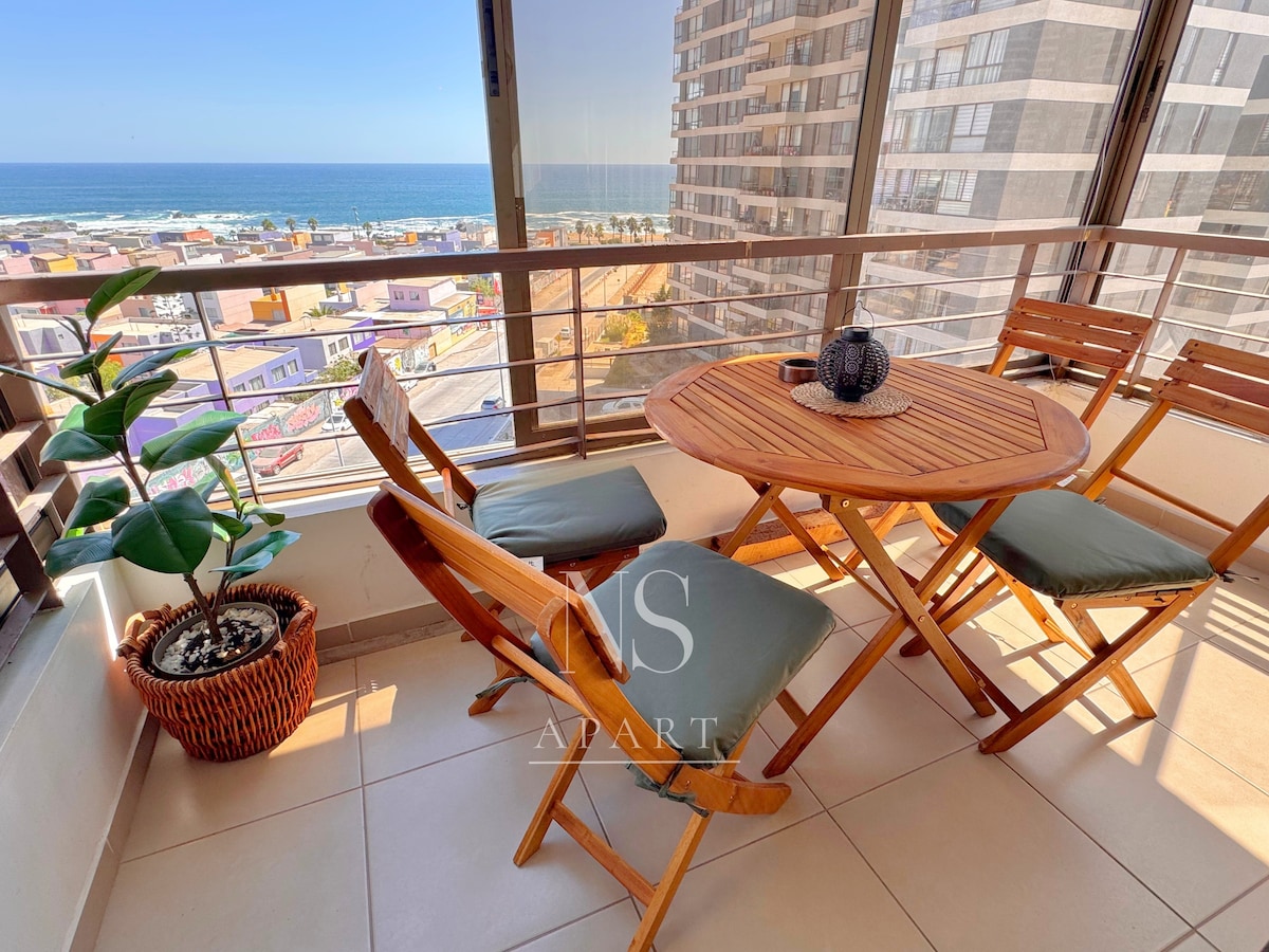 Moderno estudio con vista al mar ubicado en el corazón de Antofagasta, a pasos del Mall Plaza y la costanera. Situado en el piso 17, ofrece una vista panorámica y un ambiente cómodo para turistas o viajeros corporativos. Totalmente equipado con WiFi rápido, Smart TV, cocina funcional y terraza amoblada para disfrutar de los atardeceres de Puerto Nuevo.