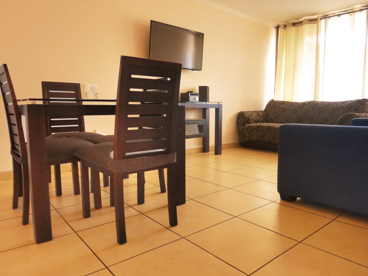 Relájate con toda la familia en este alojamiento. Ubicado en el sector sur de la ciudad, a pasos del Balneario Municipal, Ruinas de Huanchaca, casino Enjoy, feria de emprendedores y food truck en Parque Croacia. Locomoción a la puerta, vista panorámica. Cercano a supermercado, botilleria, almacén, sushi, pubs, restaurantes. A 200 metros de Universidad Católica del Norte. A 500 metros Estadio Escolar angamos. Edificio cuenta con piscina y Quincho previa reserva en conserjería.