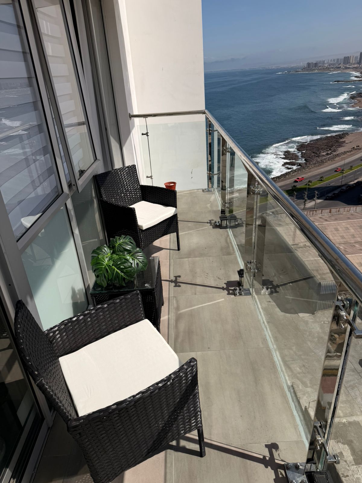 Disfruta de la tranquilidad de este departamento muy céntrico en Antofagasta. Disfruta de una hermosa vista panorámica al mar desde tus dos terrazas, próximo a centro comercial, clínica MEDS, supermercado Líder Express, café, Bar Restaurant, terminal de buses y hospital regional. El Departamento cuenta con cocina totalmente equipada, Smart TV, WIFI, cerradura digital y todo lo necesario para una grata estadía. Reserva ahora, disfruta de promociones y vive una experiencia inolvidable...!