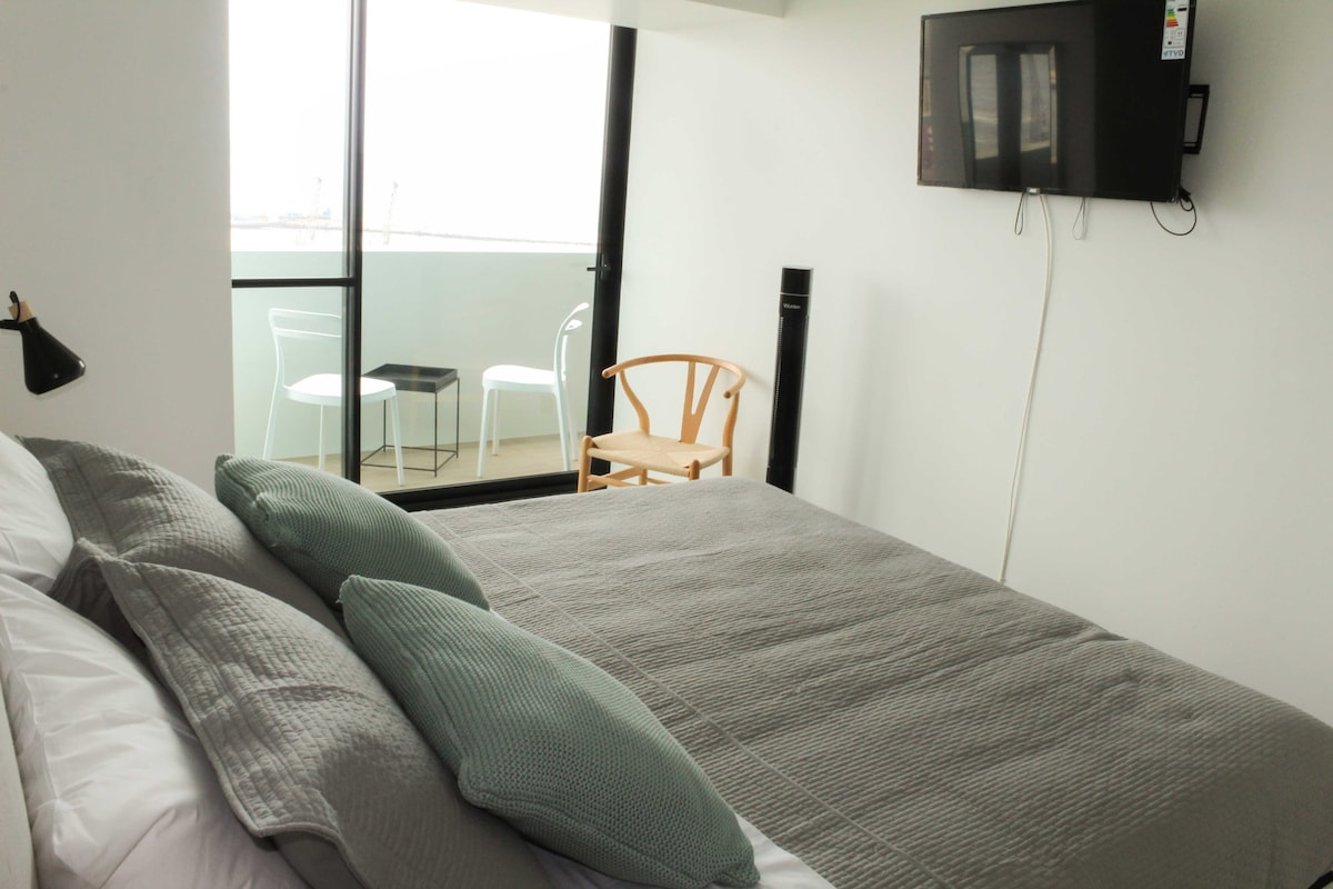 Encantador estudio en el corazón de Antofagasta, junto al Mall Plaza. Cuenta con ropa de cama y toallas, internet y un Smart TV de 45 pulgadas para ver Netflix/Youtube (no incluye TV cable). Disfruta de la vista al mar de Puerto Nuevo desde la terraza equipada y trabaja cómodamente en el escritorio. Ubicado en el piso 17 con una excelente vista al puerto y una decoración audaz y elegante. ¡Reserva ahora y vive la experiencia!