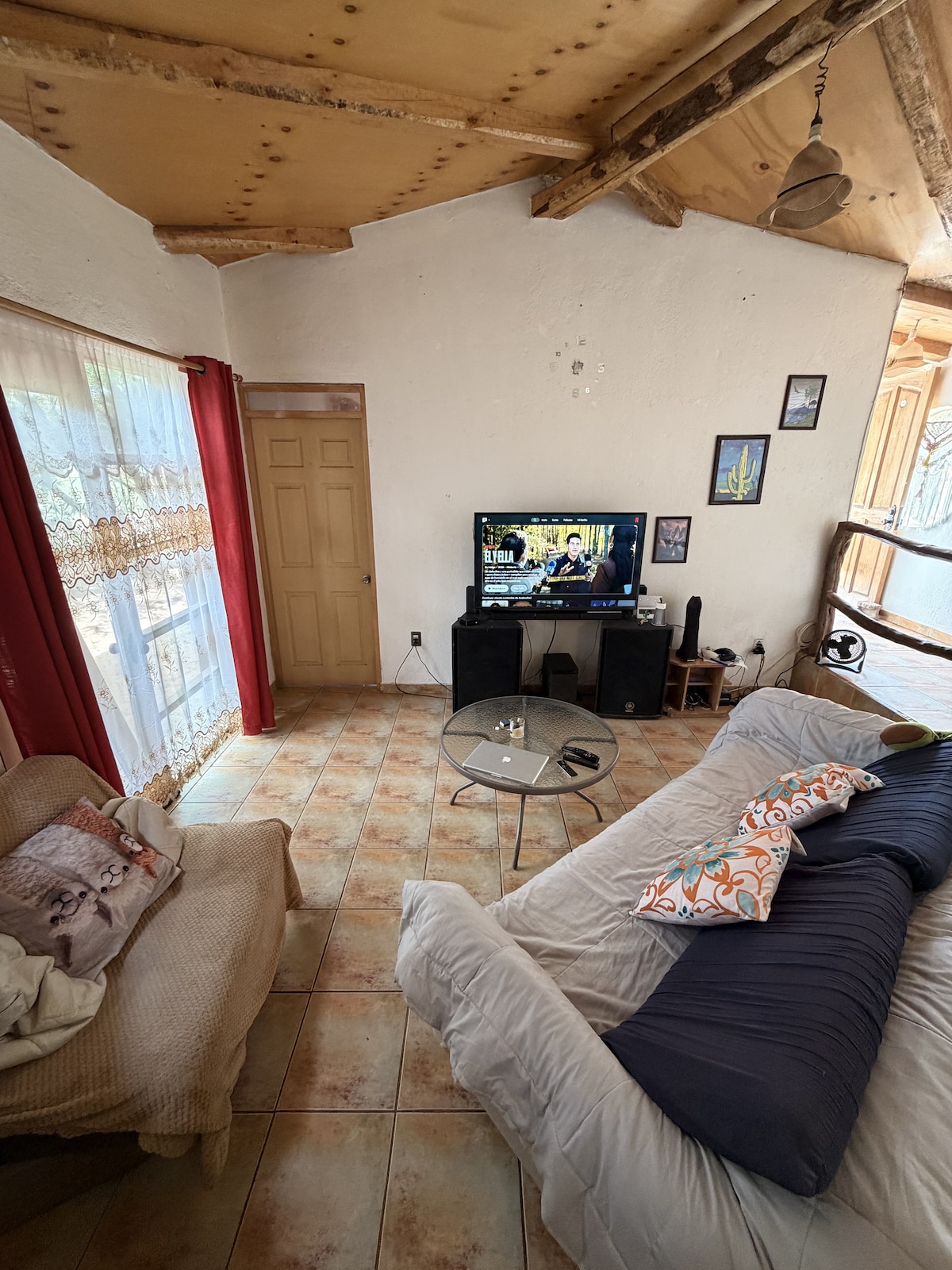 You won't find in town a more cozy home than here! A beautiful and confortable cottage, all for you, built with typical materials of Atacama with its own huge bathroom, equipped kitchen (with fridge) and a 15 mt2 bedroom. There's satellite TV, optical fiber provided WIFI, safety box, a nice terrace and park site. It's located at just two blocks from the main street of town, in a very typical area.