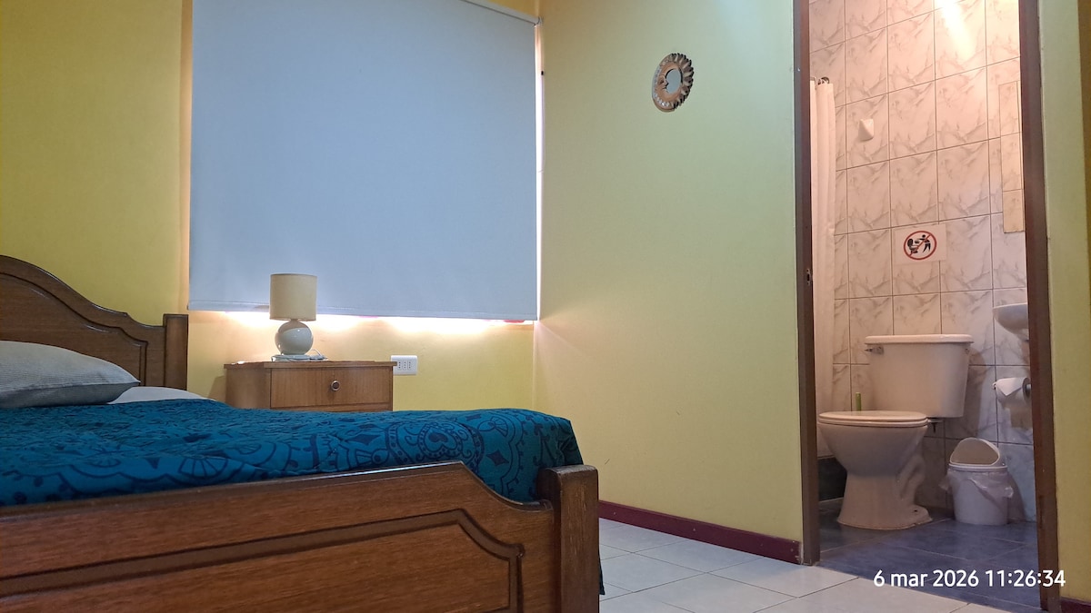 Habitación con 1 cama de 2 plazas,NO HAY COCINA;buen ambiente térmico Sin Calefacción y con Baño Privado . * NO hay Cocina disponible. *Estacionamiento privado. *Negocios muy cercanos.