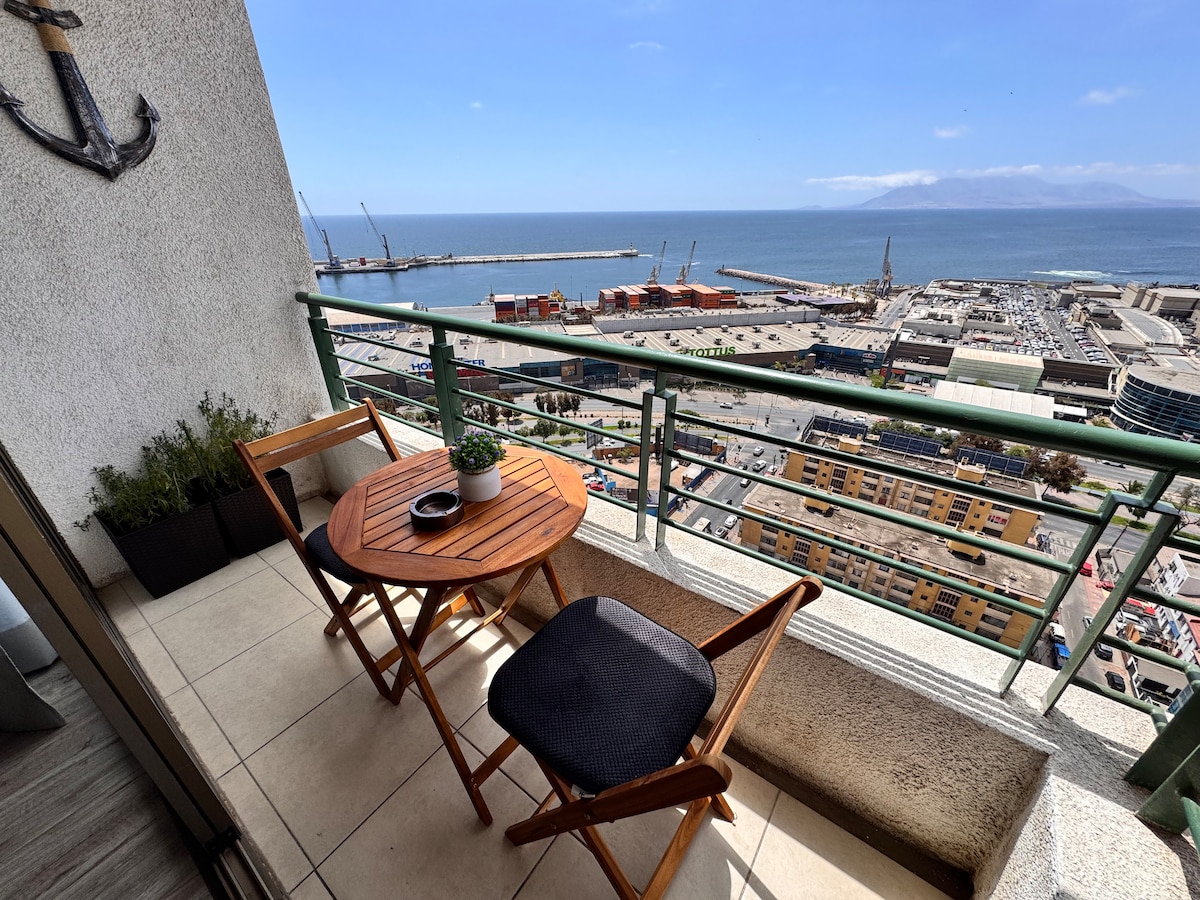 ¡Descubre Antofagasta desde un nuevo ángulo! Ubicado en el corazón de la ciudad, nuestro departamento en el piso 17 ofrece una vista espectacular de la ciudad y el mar. Con dos dormitorios y dos baños, es el lugar perfecto para familias o amigos que buscan una estancia cómoda y céntrica. Ubicación céntrica, cerca de restaurantes, tiendas y atractivos turísticos. Acceso a servicios y comodidades en el edificio Fácil acceso a transporte público y estacionamiento. 1 Estacionamiento Disponible.