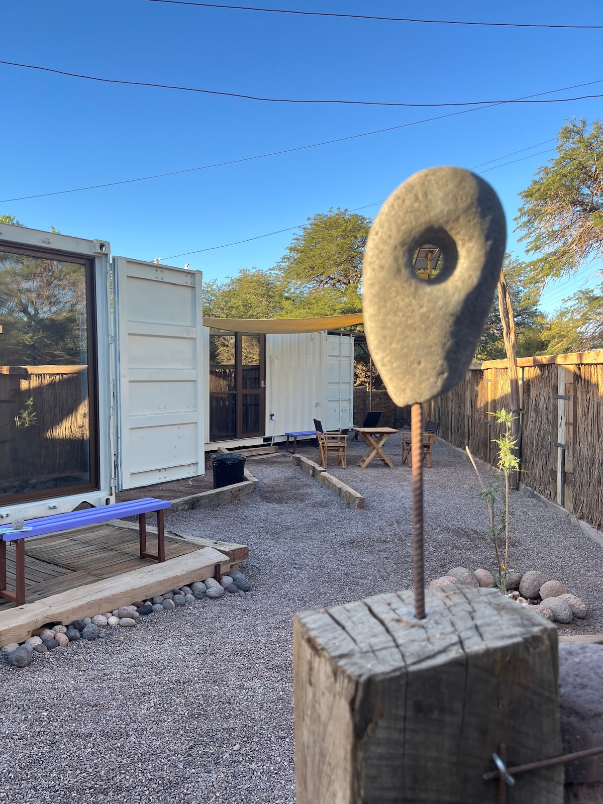Hermosa habitación matrimonial privada en aldea de 4 contenedores a 15 minutos caminando del centro de san pedro de atacama. Kitchenette para desayuno y excelente baño. Cada cabaña tiene aire acondicionado, calefacción, wifi, smart tv con Netflix y confortable cama queen. Sistema apart hotel con accesos automáticos. Habitación perfecta para dormir y descansar en un viaje de excursiones