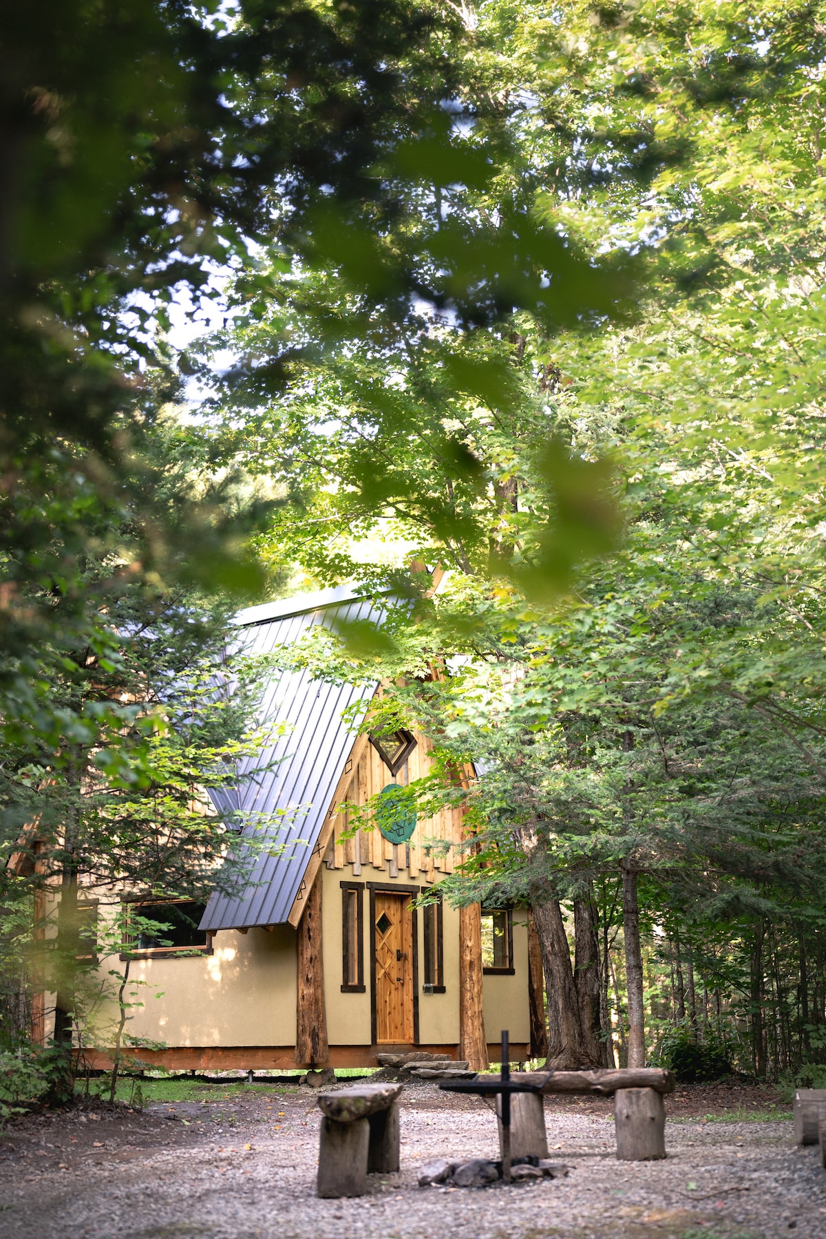Welcome to La Khabine! This cozy, modern cabin comes with all you need to relax and connect with nature. Enjoy a glass of wine with the sound of a crackling fire in the wood burning fireplace. Take in the view of the forest through the surrounding floor to ceiling windows. Relax in the private outdoor cedar barrel sauna. Natural self-care products, firewood, laundry soap, and high-speed Wi-Fi are all complimentary. We hope you'll love our little cabin of windows as much as we do :)