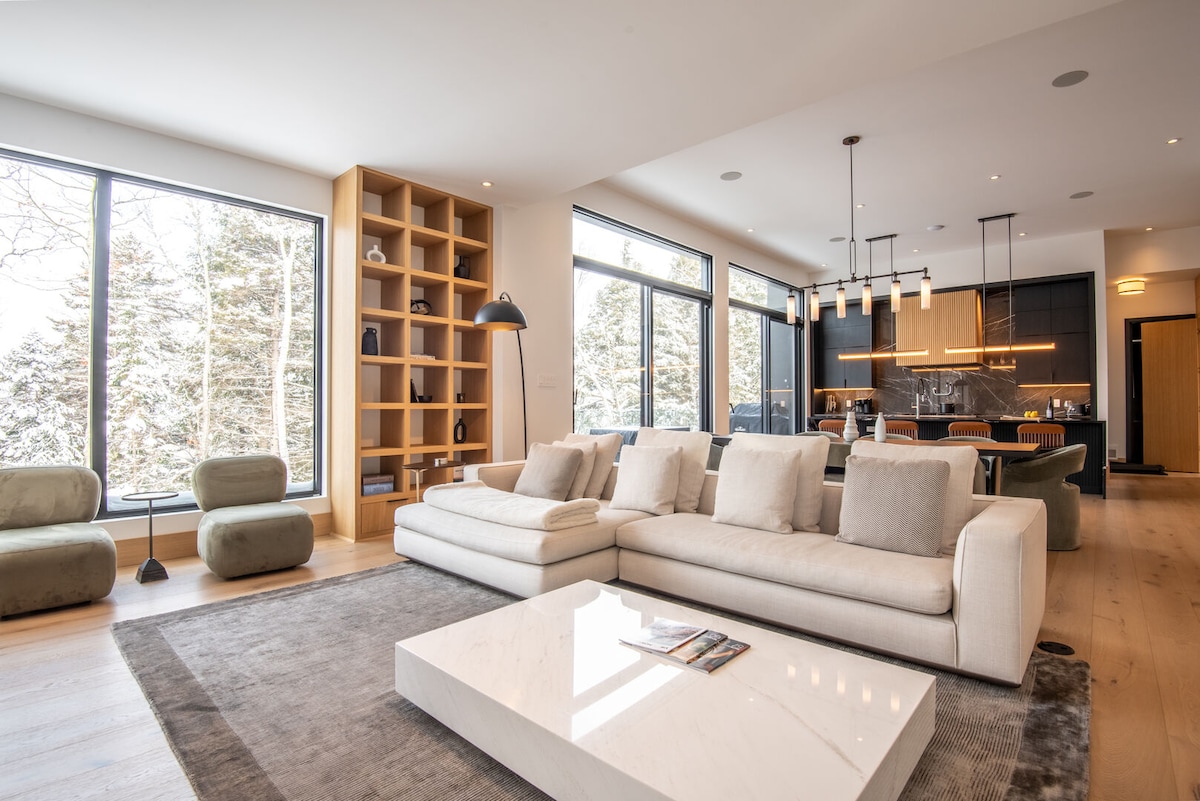 IG @lumihaustremblant • 5⭐ guest reviews, reels & local tips Welcome to LumiHaus — a Scandinavian-inspired luxury chalet with private hot tub, forest views, and an open-concept design filled with natural light. Just 7 minutes from Mont-Tremblant’s ski resort and pedestrian village, it’s the perfect base for adventure or relaxation. Expansive windows bring the outdoors in, letting you enjoy nature’s serenity while staying close to the area’s best activities year-round.