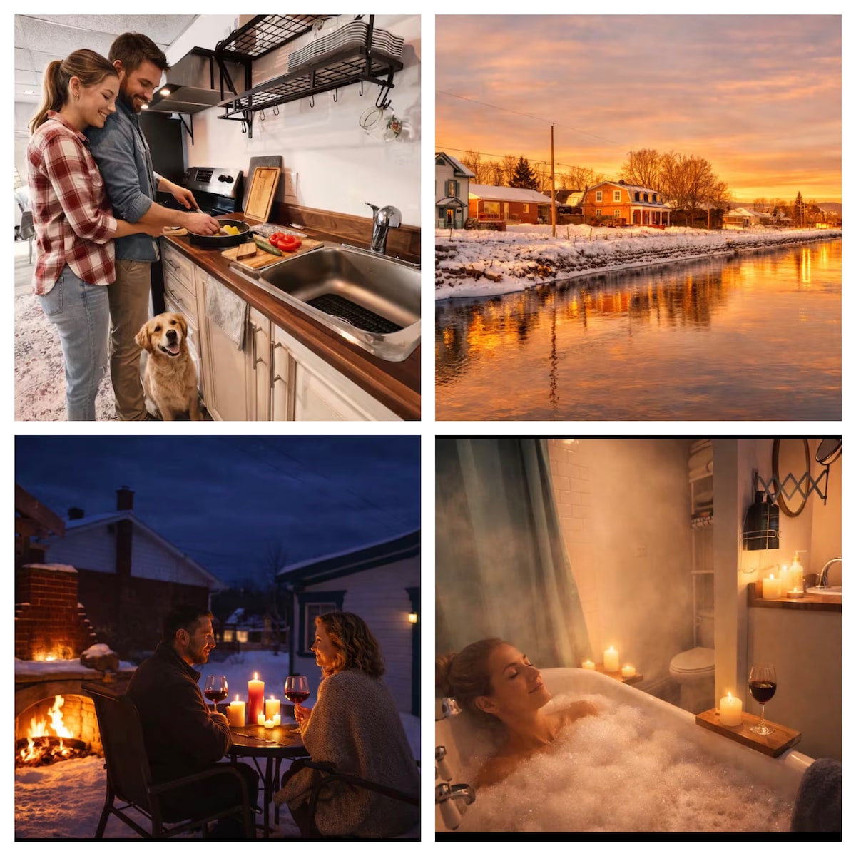 ✔️ Year-round private outdoor spa 🛁 ✔️ AC & heating for optimal comfort 🌬️ ✔️ Outdoor firepit for starry nights ✨ ✔️ In front of the Lake for swimming & kayaking 🚣♀️ ✔️ Indoor fireplace for cozy moments 🔥 ✔️ BBQ, Picnic table & outdoor ambiance lights 🌿 ✔️ Smart TV & high-speed WiFi for streaming 📺 ✔️ Romantic and serene setting for relaxation 💑 ✔️ Ideal for a romantic escape for two 🥂