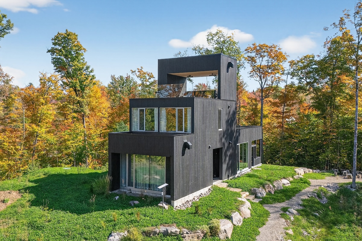 This luxury Mont-Tremblant chalet, inspired by artist Rolland Poulin, is an architectural masterpiece in the Laurentian forest. Its sleek design blends with nature, featuring fluid interiors, expansive windows, and multiple living spaces. Enjoy two covered terraces, direct outdoor access, and a panoramic 3rd-floor terrace with mountain views. Just minutes from Tremblant village, ski slopes, and outdoor activities, it offers a serene, high-end retreat ideal for families, couples, or getaways.