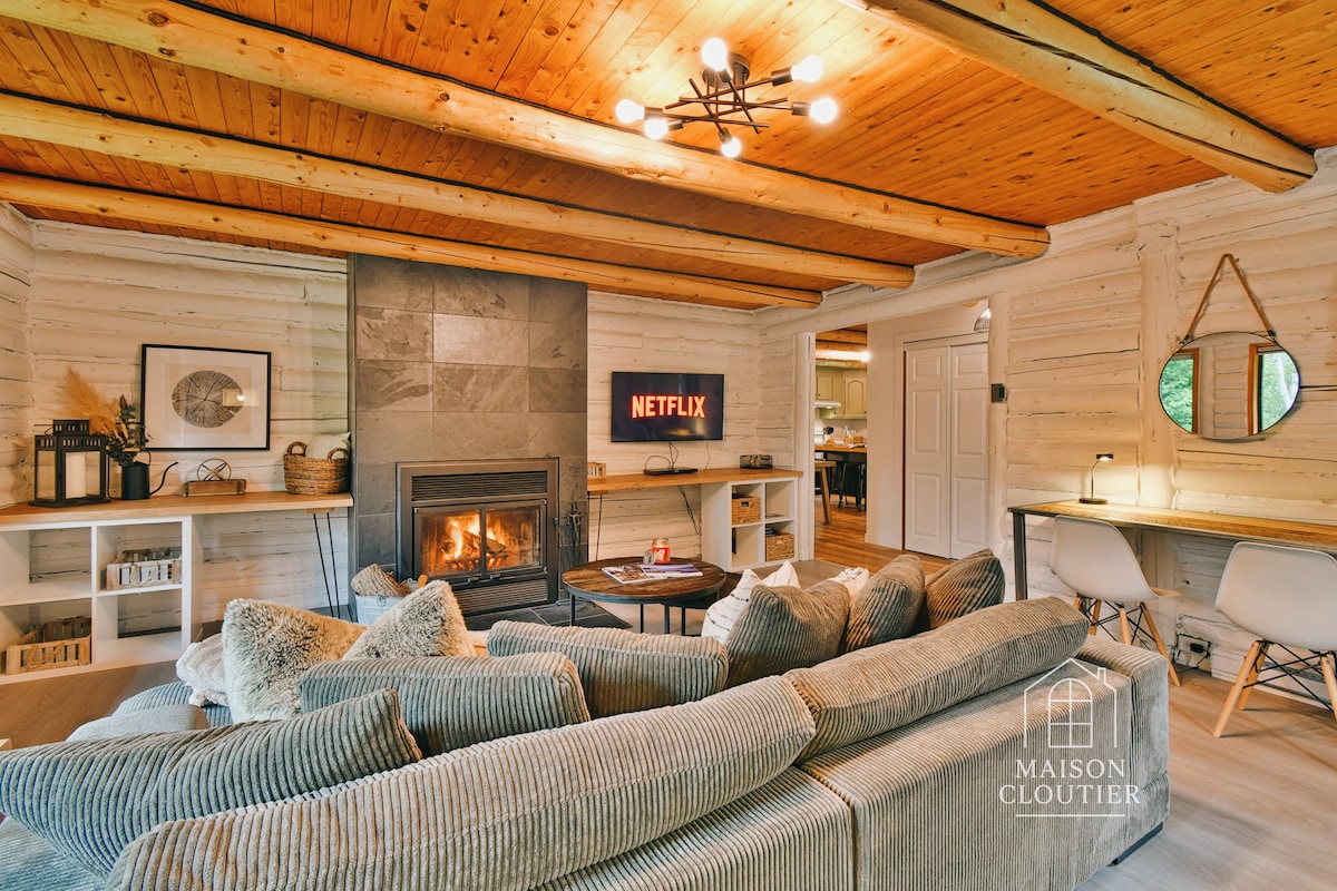 LIBRA CABIN | Refuge idyllique en nature - Spa et sauna sec offrant un lieu de détente ultime - Grande fenestration offrant une luminosité exceptionnelle inondant l'espace intérieur - Entouré d'arbres, niché au coeur de la nature - 2 grands patios offrant de nombreux espaces de relaxation - Foyer intérieur et extérieur - À moins de 15 minutes du Mont-Tremblant