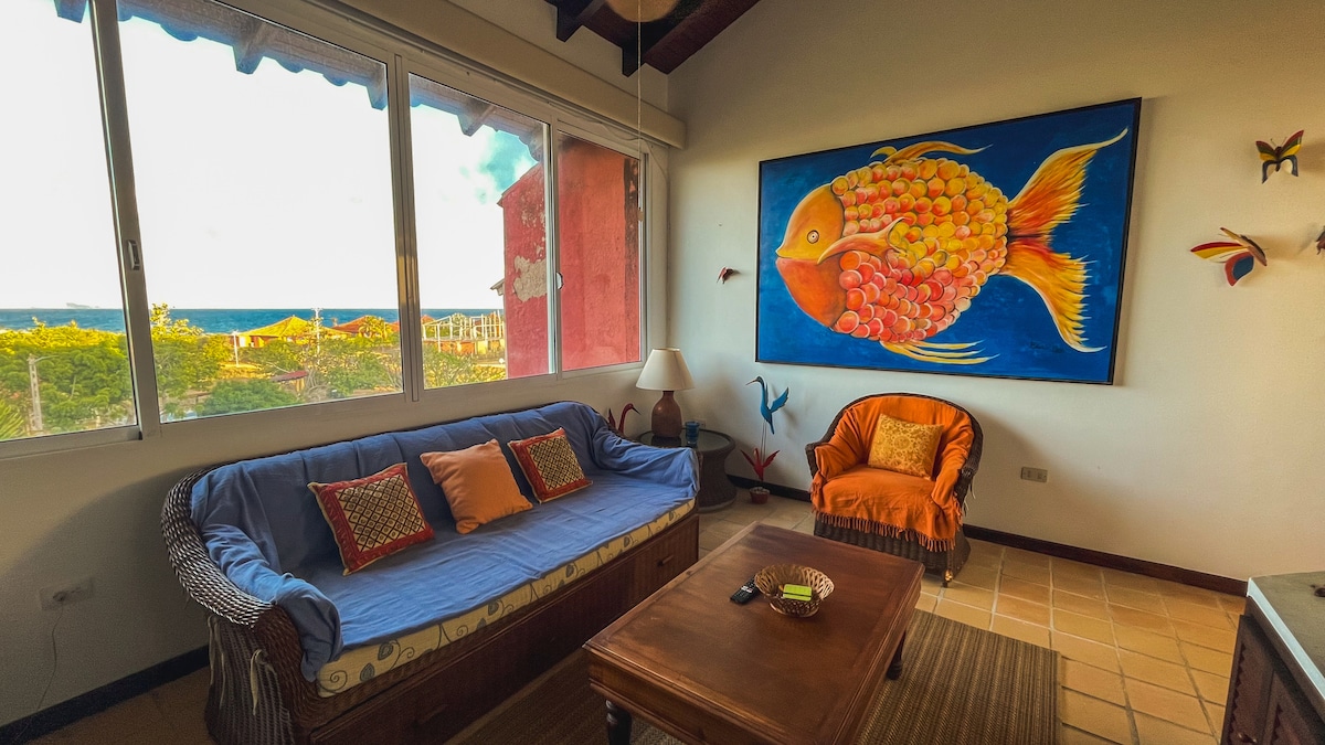 Ce logement paisible offre un séjour détente pour toute la famille. L'appartement dispose d 'une chambre avec salle de bain ,salon avec un canapé lit . La cuisine est entièrement équipée pour tous nos voyageurs et celui ci se trouve a l ‘entrée de Playa el Agua a 50 mts de l’avenue et a seulement 150 mts de la plage de Playa el Agua et a très peu de minutes de Playa Parquito . Plusieurs services inclus : piscine , terrasse , tv par cable , wifi , parking , cameras.