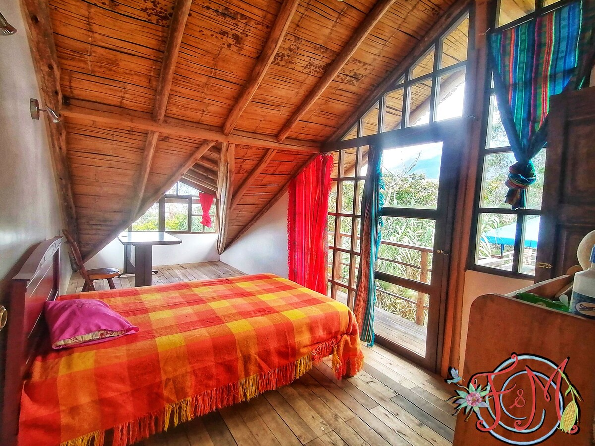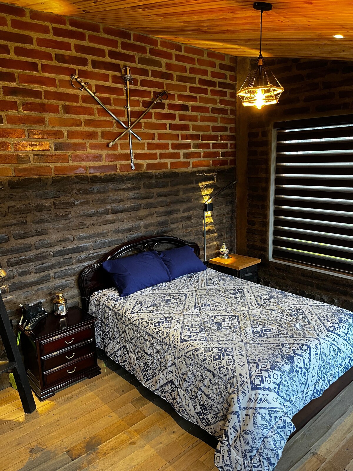 Suite tipo loft, de dos ambientes con Tina de baño, sala, cocina y desayunador, dentro de la suite. (Totalmente independiente) En las áreas exteriores podrás acceder a nuestra piscina y amplios jardines. La propiedad es una casa de campo con una preciosa vista del volcán Imbabura y Cotacachi. Desconéctate del estrés y ruido de la ciudad en este mágico lugar.