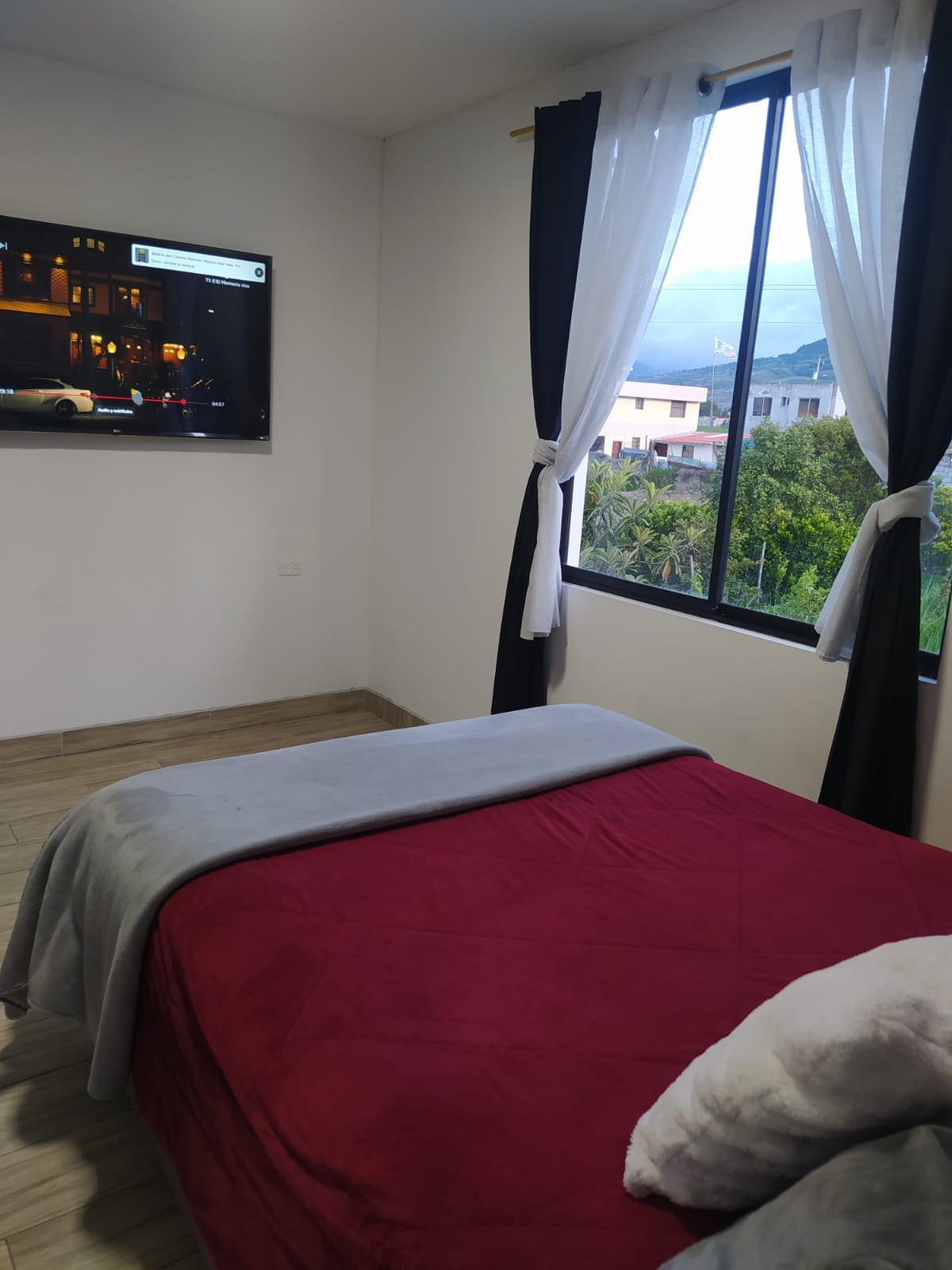 🌆 ¿Por qué deberías quedarte con nosotros en Ibarra? 📍 A 5 min del centro de Ibarra. 🛏️ 3 habitaciones: 2 con cama matrimonial y 1 con 2 camas individuales (4 camas). 🚿 3 baños (2 completos con ducha). 🍳 Cocina completa con utensilios + 🛋️ sala y 🍽️ comedor privados. 📶 Internet, 📺 TV, 💧 agua caliente y servicios básicos. 🚗 Parqueadero para 1 carro pequeño o mediano (no camiones). 🔒 Seguridad en todo el edificio.