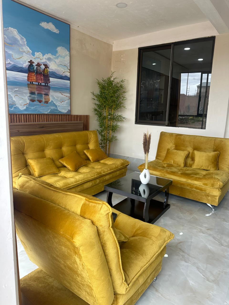 Departamento moderno y centrico en Uyuni. disfruta de la comodidad y tranquilidad de este departamento de dos cuartos y una sala con un diseño acogedor y funcional para tu estadia. dispone de una cocina americana equipada con todo lo necesario para disfrutar tus comidas.Ademas su muy buena ubicacion se encuentra cerca de una clinica privada y un doctor en planta baja. el mercado campesino de Uyuni esta a 50 metros y a 300 metros del reloj de Uyuni y sus cercanos restaurantes. Feliz estadia!
