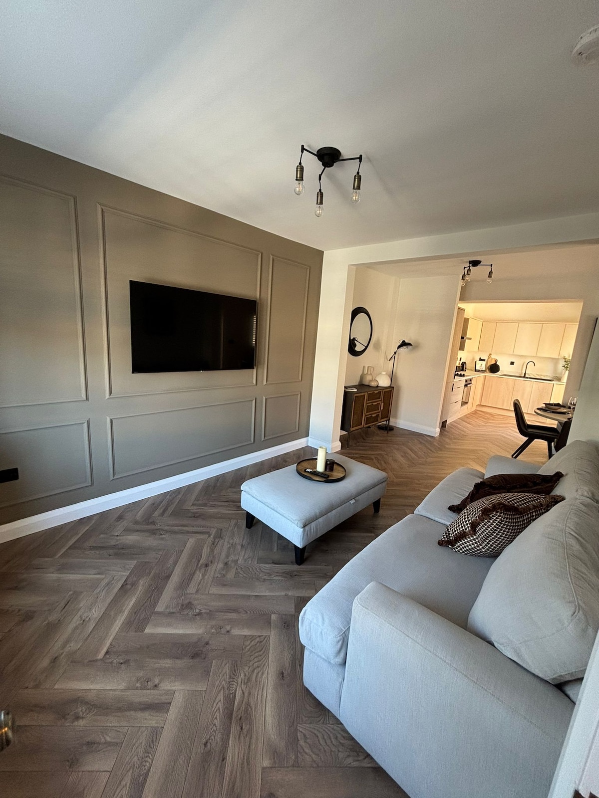 Stunning 3 bedroom townhouse , just refurbished and painted throughout, with new kitchen , bathroom and carpets . The property has Sky streaming with Netflix and full WiFi . Located in a peaceful residential location with dedicated parking at the front door and a rear garden . Two minutes walk from all local amenities , beach and extensive play park . Six miles from Belfast with local bus and train services nearby . Half an hour from the International Airport and 20 minutes from City Airport .