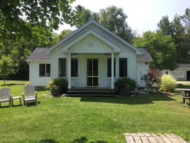Adorable cottage on Lake Charlevoix! This rental shares a large, 1-acre property with a house that is listed separately. Both can be rented together. One bedroom with queen bed, sofa sleeper in living room, kitchen, full bath, lake view, and covered deck overlooking 125' of shared Lake Charlevoix frontage. Shared dock (seasonal) and parking. Fire pit and grill (seasonal). Whole home heating system, bedroom has window AC. 1 mile to downtown BC on paved bike trail. 6 miles to Boyne Mountain.