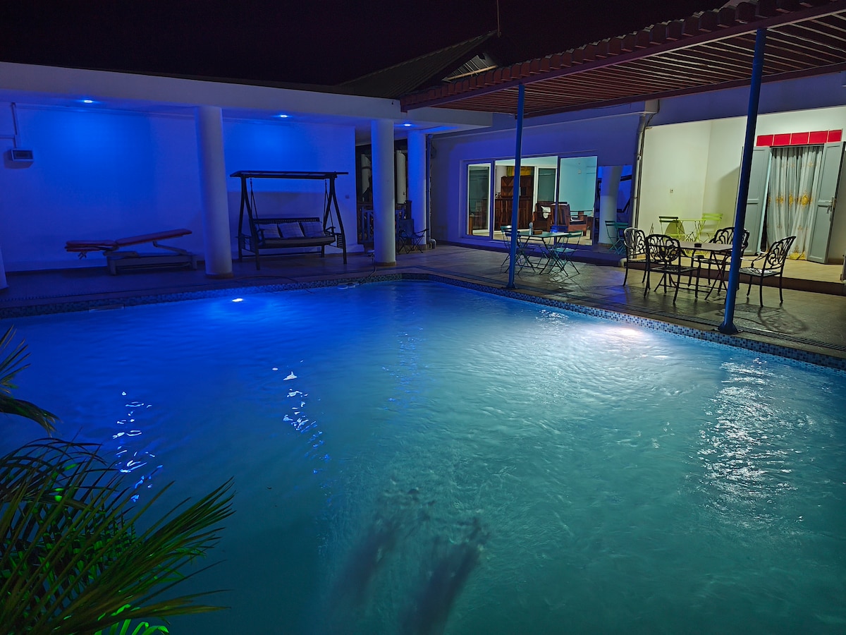 Découvrez une charmante villa avec piscine, située dans le quartier résidentiel sécurisé de la Scama, cité BTM. Elle dispose de 3 chambres doubles (dont 2 climatisées), chacune équipée d’une salle de douche privative, offrant confort et intimité à tous les voyageurs. Un berceau est également disponible sur demande, sans supplément. Vous profiterez également d’une cuisine entièrement équipée, d’un grand séjour et d’une salle à manger lumineuse et spacieuse.