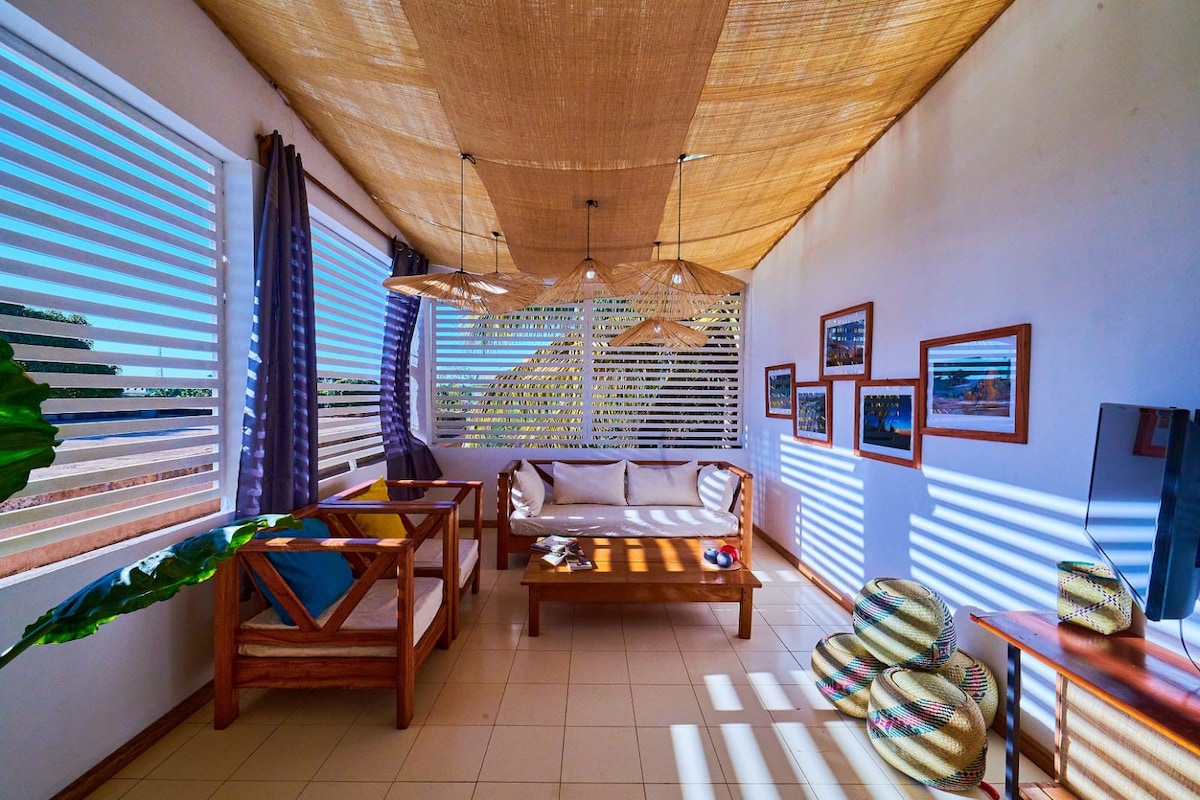 Notre maison unique et atypique se situe dans un quartier de pêcheurs. Vous serez les pieds dans l'eau, ce qui n'existe nulle part ailleurs à Diego. Vous aurez à votre disposition : un ponton duquel vous pourrez guetter les pêcheurs sur leur retour, une cuisine entièrement équipée et un barbecue extérieur sur lequel vous pourrez griller vos poissons. Dépaysement et immersion dans la culture malgache garantis. Notre maison vous conviendra si vous souhaitez vous imprégner des couleurs locales.