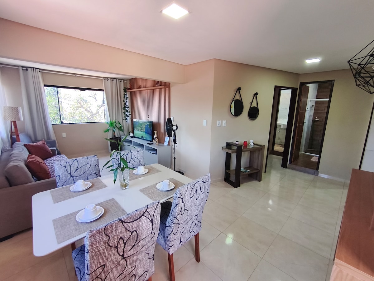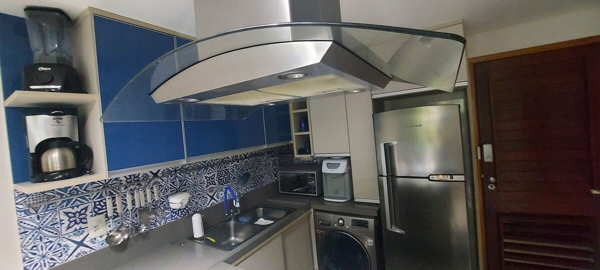 Close to Patacho Beach, our space is designed to offer everything we value in our own travels. With two full suites for up to six adults, a private balcony with barbecue, A/C in every room, a fully equipped kitchen, and a washer-dryer! We guarantee a unique stay! In addition, you’ll have access to a full resort-style condominium with a gym, pool, jacuzzi, playground, and 24-hour reception. The location is excellent, close to restaurants and the natural beauty of Milagres and Japaratinga!