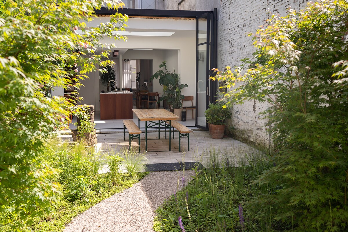 Zonnige studio met wilde tuin. Volledig gerenoveerd en voorzien van een badkamer met apart toilet, een ontbijthoekje (geen volledig uitgeruste keuken) met microgolf, koelkast en waterkoker en een bed met uitzicht op de stadstuin. Perfecte uitvalsbasis om ´t Stad te verkennen, met openbaar vervoer en Velo´s vlakbij. Erg geschikt voor koppels en soloreizigers! Aanrader voor evenementen in deSingel, Antwerpen Expo en de Wezenberg. Ook prima bereikbaar voor festivalgangers van Tomorrowland.