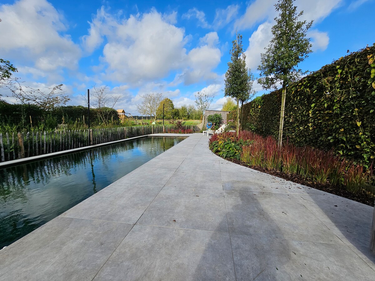Stijlvolle villa in Schoten met privézwembad, hammam, buitenbar en grote tuin. 5 slaapkamers, 2 badkamers, uitgeruste keuken en wellness met dubbele regendouche. Kindvriendelijk met omheind zwembad, speeltuin, pingpong, basketgoal, 2 voetbaldoelen en petanquebaan. Gelegen in een zeer rustige buurt met topgastronomie en prachtige natuur voor wandel- en fietsroutes. Op 25 min van Antwerpen. Perfect voor families of een luxueus weekend met vrienden.