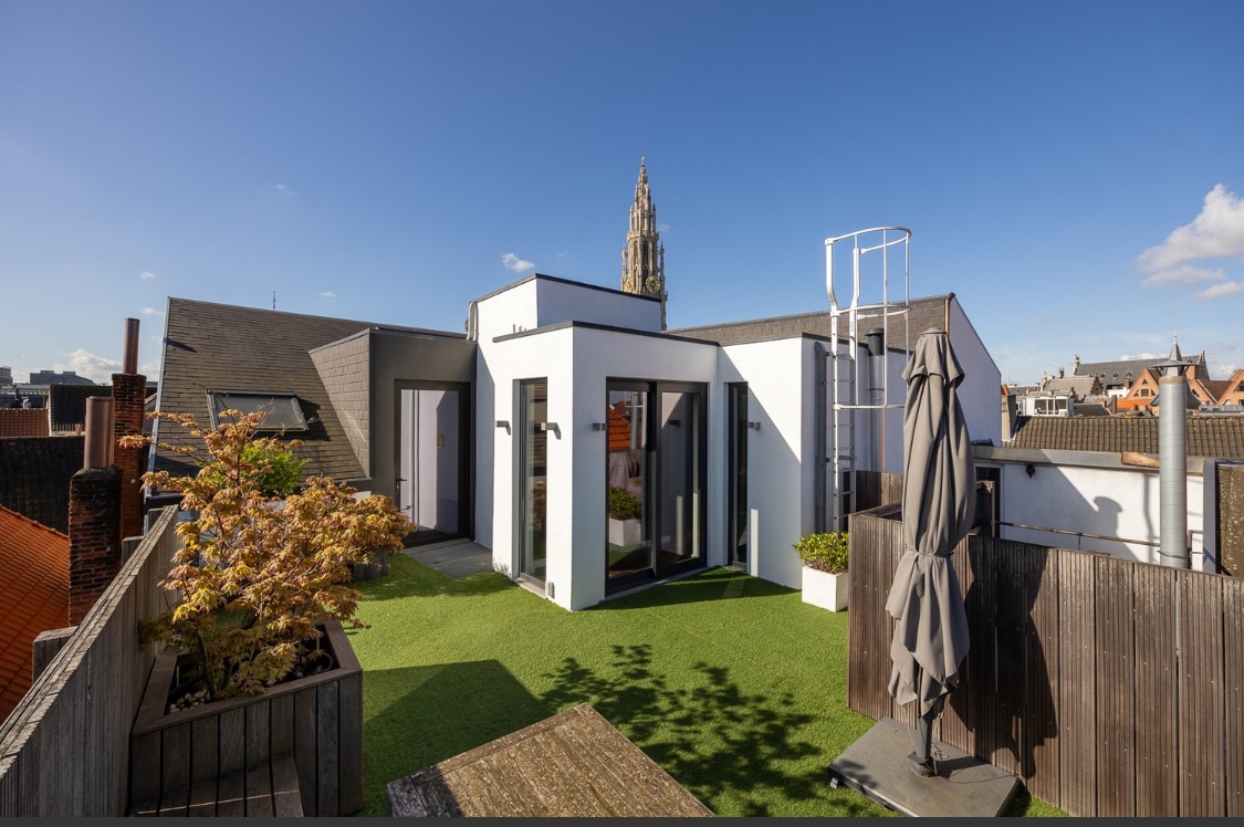 Pinnacle of luxury 3-bed, 3-bath apartment, heigh ceilings & beautiful private sunny terrace in central Antwerp, everything at 1-5 mins walking distance. Nestled in a unique historic mansion in the heart of Antwerp, in the direct vicinity of the Botanic Sanctuary hotel, Cobra, Caffenation & plenty of restaurants, shops, ... Enjoy the peace and privacy of an expansive sun-drenched terrace - a rare and green oasis in the city center. Perfect for those seeking space, comfort & style.
