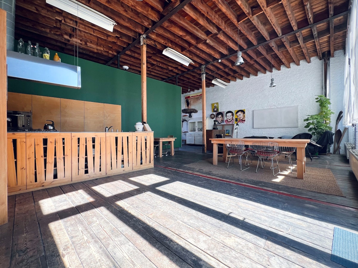 Centraal gelegen, ruime loft in het centrum ( tss. historisch centrum en levendige Zuid). Extra rustig met privacy. Uniek ingerichte ruimte met loft -accenten, patio's en zonne-terras. Vlakbij Groenplaats, modemuseum, Museum voor Schone kunsten , Kloosterstraat en trendy winkelstraten. Restaurants in de onmiddellijke omgeving. Gezellig pleintje dichtbij. Supermarkt op 150m. Alle openbaar vervoer vlakbij ( Groenplaats). Inpandige garage mogelijk mits reservatie 1 dag vooraf (25 euro/ nacht)