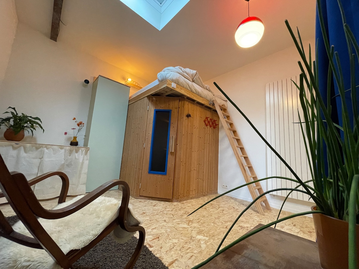 Centraal gelegen, ruime loft in het centrum ( tss. historisch centrum en levendige Zuid). Extra rustig met privacy. Uniek ingerichte ruimte met loft -accenten, patio's en zonne-terras. Vlakbij Groenplaats, modemuseum, Museum voor Schone kunsten , Kloosterstraat en trendy winkelstraten. Restaurants in de onmiddellijke omgeving. Gezellig pleintje dichtbij. Supermarkt op 150m. Alle openbaar vervoer vlakbij ( Groenplaats). Inpandige garage mogelijk mits reservatie 1 dag vooraf (25 euro/ nacht)