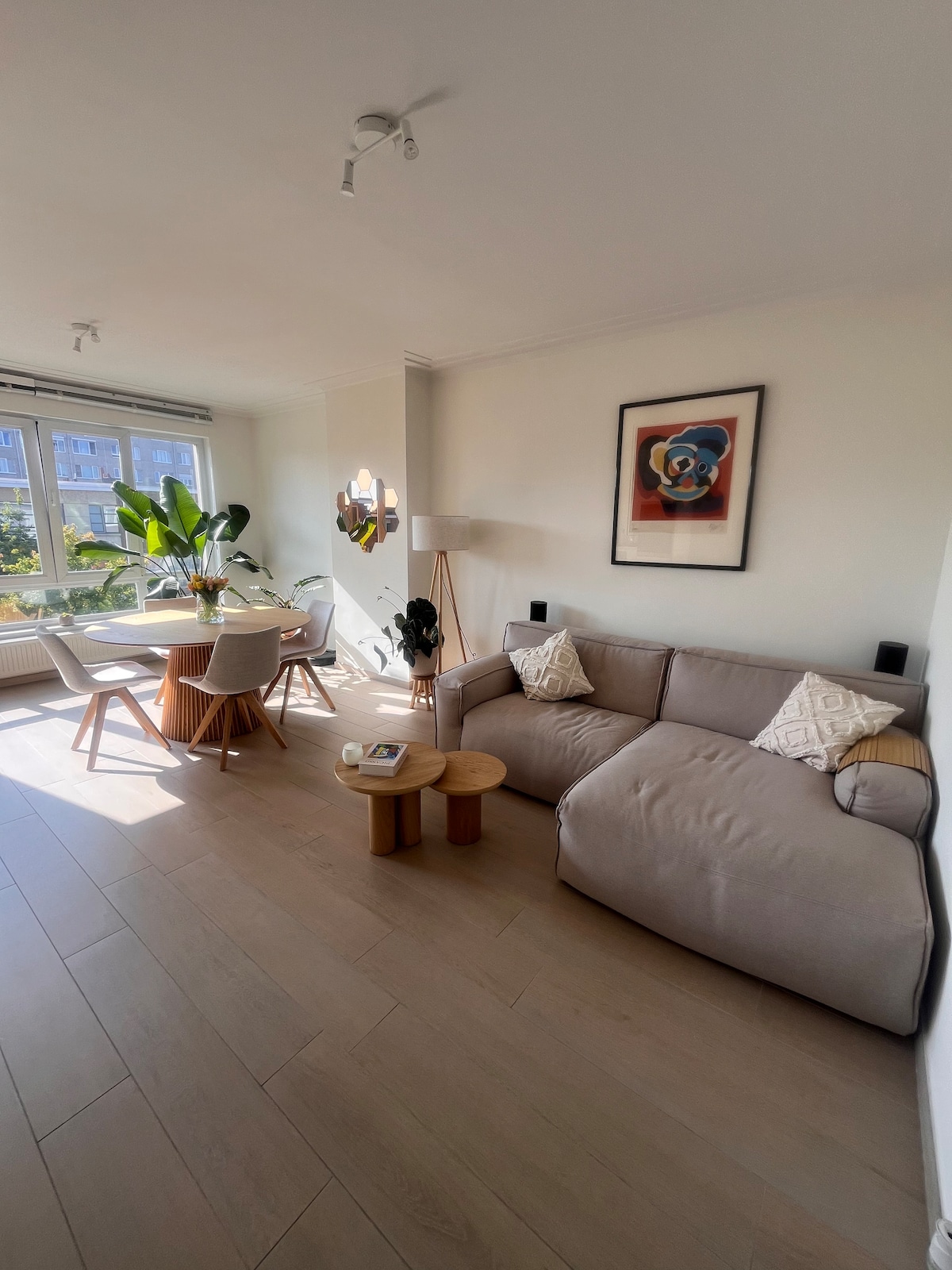 Newly renovated apartment at Vlaamsekaai, in Antwerp's vibrant 'Zuid'. Features a bright living space, fully equipped kitchen, dining area, bedroom with a double bed, separate bathroom. The living room offers a comfortable sofa bed, ideal for (2) children or one adult. Perfect location opposite the new park, with restaurants, bars, and the KMSKA museum just steps away. Underground parking at your doorstep. Just perfect to explore our beautiful city. Enjoy stylish living in the heart of Antwerp!