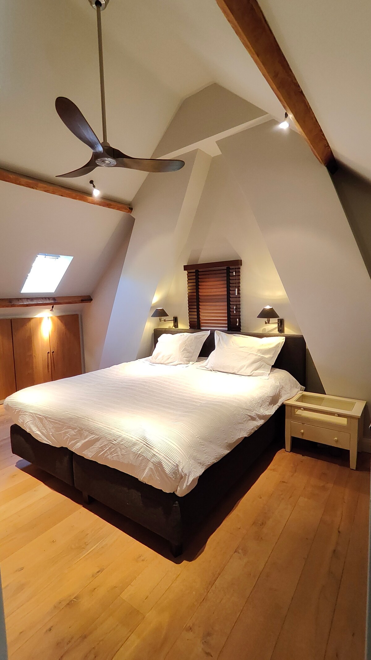 Mooi vrijstaand guesthouse met aparte/eigen ingang, industriele uitstraling. (Loft concept.) Gebruik van overdekte buitenkeuken met inductiekookplaat, BBQ en koelkast is mogelijk. gratis zwembad in de periode (mei-augustus). Voorzien van mooi sanitair oa dubbele regen/stort douche. Wifi, internet en digitale-tv aansluiting. Minibar, Philips Hue led verlichting Gelegen aan fiets-/wandelroute's. tot