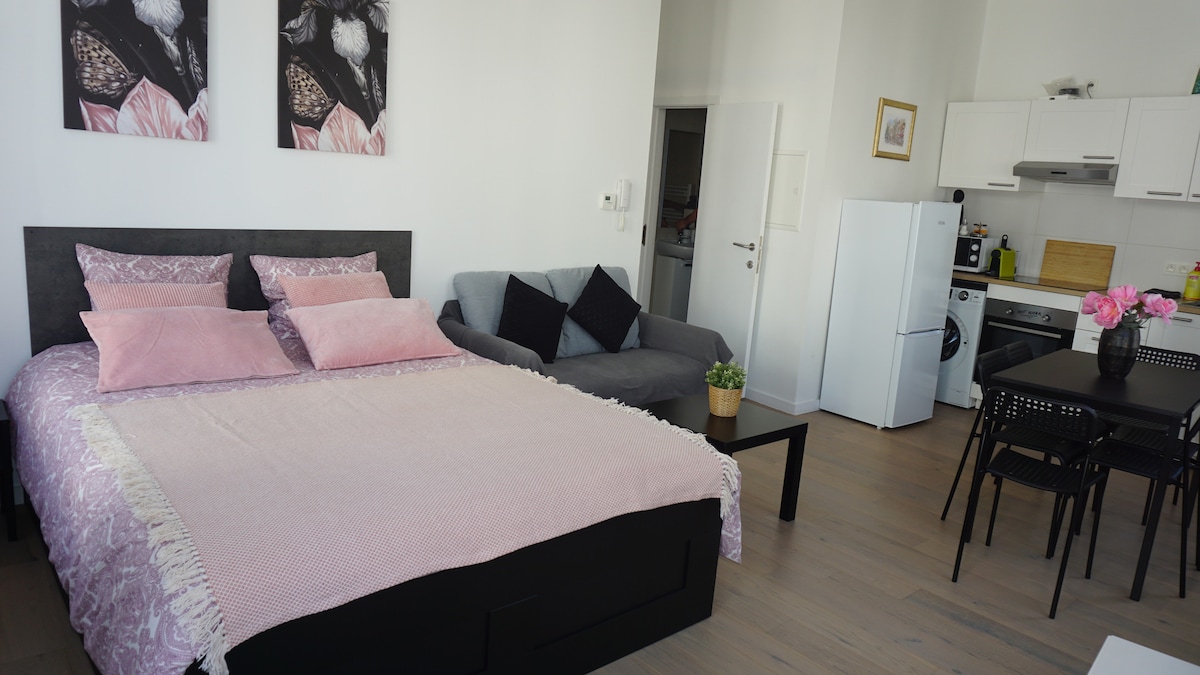 Welcome to your calm Antwerp retreat - where you can unwind after days spent exploring Antwerp. - Sleeps 2 | 1 bedroom | 1 bed | 1 bath - Private patio or balcony - Kitchen & dining area w/ dedicated workspace - Central heating for comfy cool-season stays - Washer, TV, sound system, books - Pet-friendly