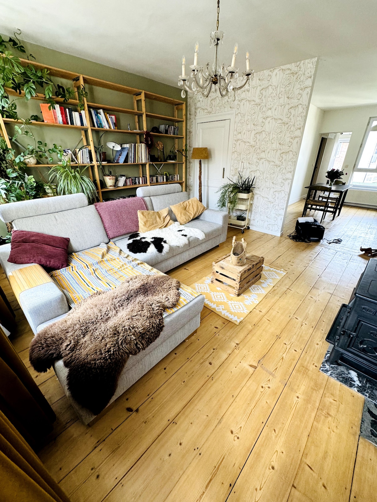 Appartement Cosy BoHo Deluxe ligt net buiten het centrum. Jacuzzi, 150inch cinemascherm, automatische verlichting, airco en een luxueuze inrichting. Stilte is vereist vermits er overal buren zijn. Na 22u is de jacuzzi verboden. Parkeren is gratis rond het gebouw. Privé parkeerplaats is te huur. De tram stopt voor de deur en brengt je op 6 min naar station Centraal. De ideale locatie om Antwerpen te bezoeken. Het Sportpaleis, Trix, Bosuil, ligt allemaal op wandelafstand. Ontbijt is mogelijk.