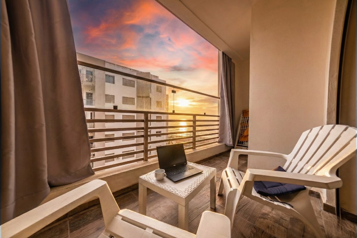 🌴 🏄♂️ Venez séjourner dans un appartement neuf & moderne tout équipé avec vue 180° sur l'océan. Toutes les fenêtres et terrasses font face à la mer, seuls 500m séparent l'appartement de l'océan. L'appartement est situé à 8 min en voiture d'Agadir et à 15 min en voiture de Taghazout. Ce n'est pas seulement un emplacement idéal pour les amateurs de surf et de plage mais aussi pour ceux qui souhaitent rester à proximité des commodités et des restaurants.