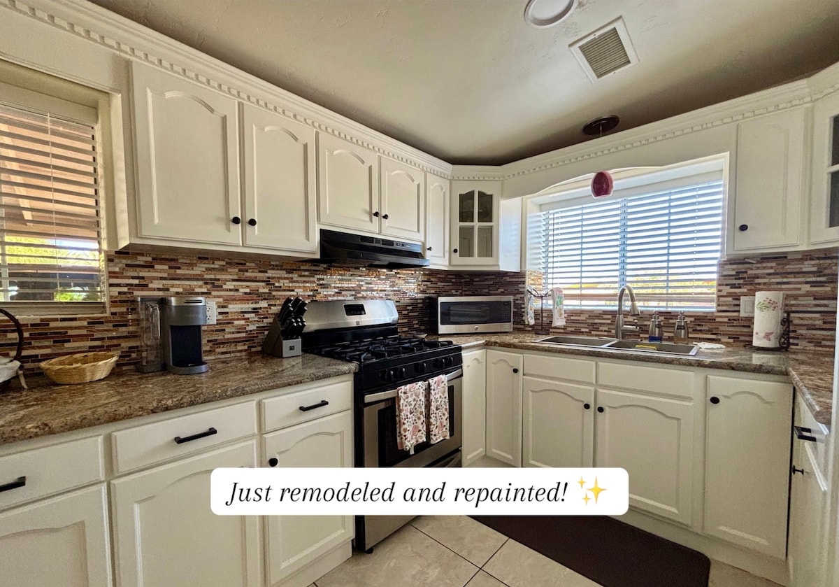 This renovated mid-century-modern desert retreat awaits with premium king size bed, luxury all cotton bedding, towels, robes and a well-equipped kitchen to comfort weary travelers. Close to town (1/2 mile) with shops, restaurants, golf courses, pools, tennis courts, & hiking just moments away. Explore the night sky in this registered Dark Sky Community with provided telescope, off-road adventure in the Anza-Borrego State Park, hike local trails, or just take in the surrounding mountain scenery.