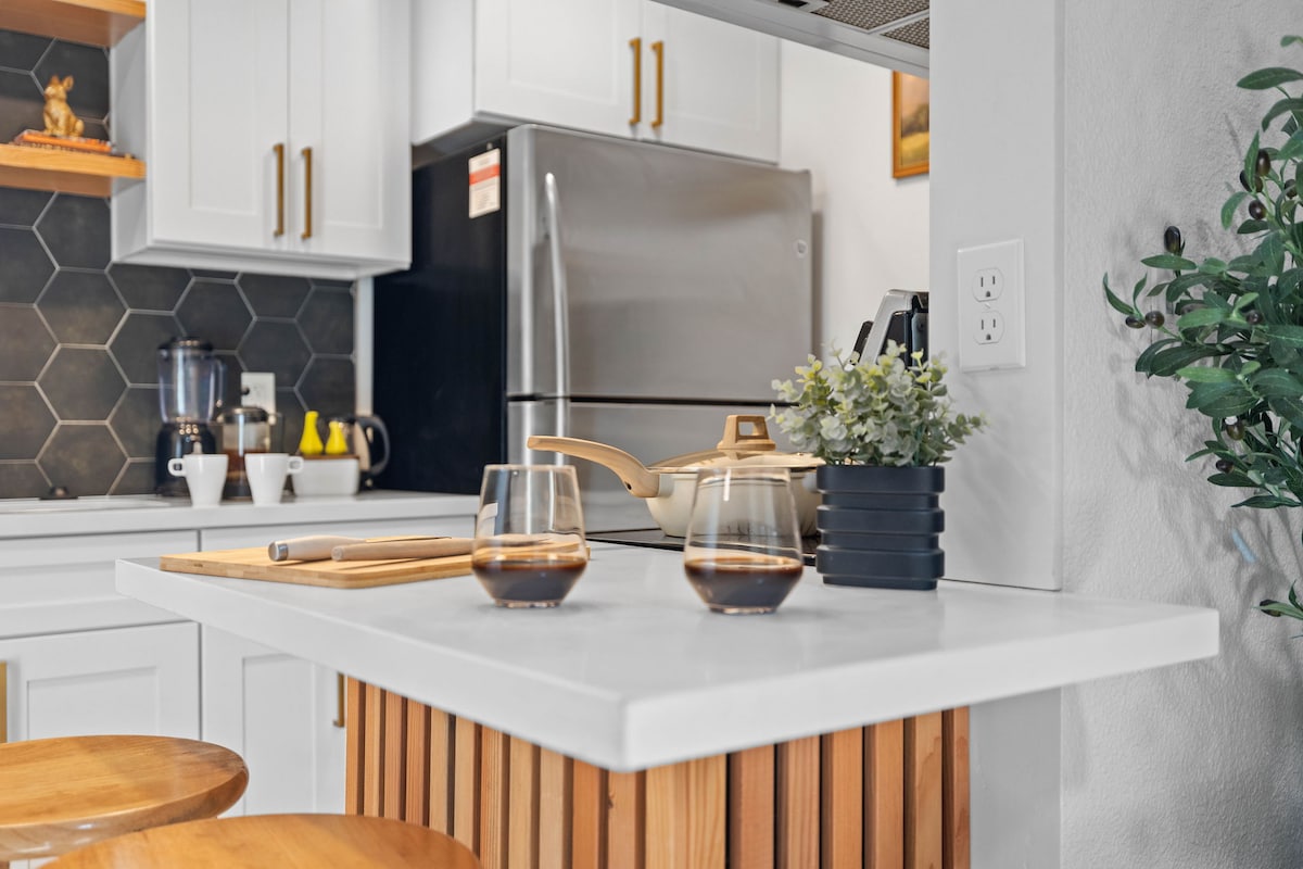 This renovated mid-century-modern desert retreat awaits with premium king size bed, luxury all cotton bedding, towels, robes and a well-equipped kitchen. Close to town (1/2 mile) with shops, restaurants, golf courses, pools, tennis courts, & hiking just moments away. Explore the night sky in this registered Dark Sky Community with provided telescope, off-road adventure in the Anza-Borrego State Park, hike local trails, or just take in the surrounding mountain scenery.