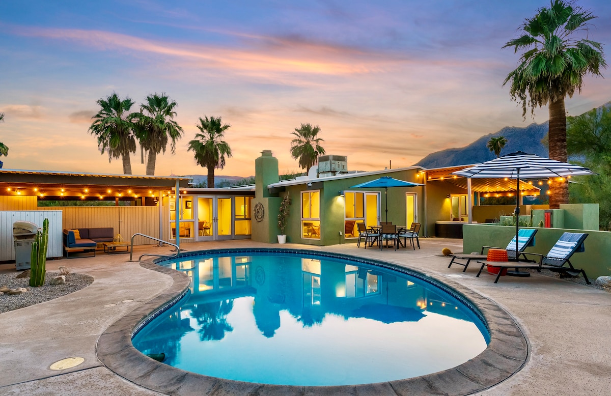 Escape to Borrego Springs, relax by the pool with views of Indian Head Mtn. Enjoy your morning coffee or sunset cocktails in the serene backyard. Short walk to De Anza Golf Club. Luxury beds, and Amenities for the perfect stay. ✔️Pool ✔️Hot Tub ✔️Portable Pickelball Net and paddles ✔️Gas Fire Pit ✔️Dark Sky Star Gazing ✔️Wood Burning Fire Pit ✔️Equipped kitchen, Coffee maker, Pebble Ice maker ✔️In-unit laundry ✔️Gas BBQ ✔️Mid-Century William Krisel Designed Home Relax and Adventure in Borrego